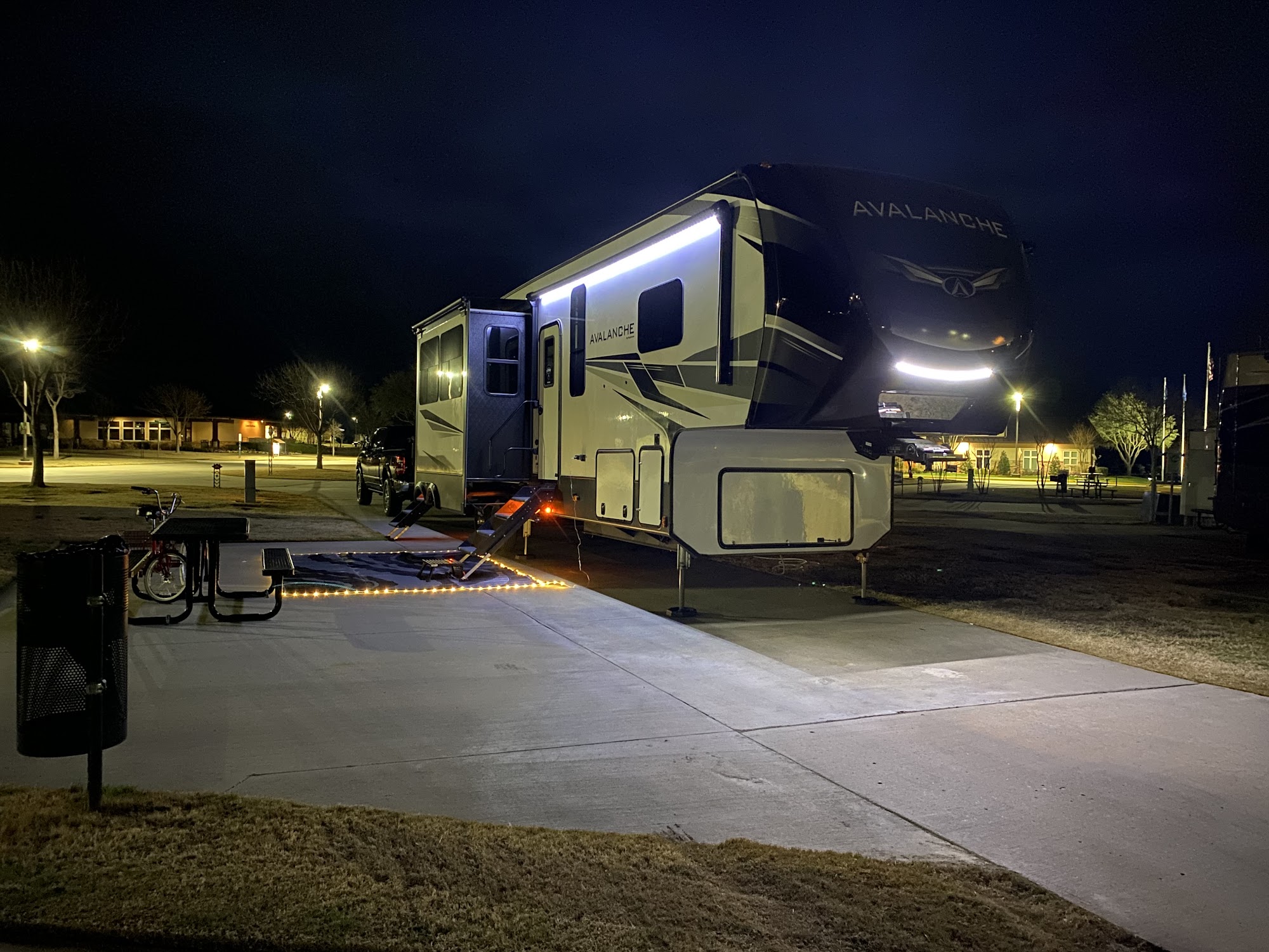 Fun Town RV Park at WinStar is a beautiful and well-maintained campground offering spacious, 80-foot long sites with hookups on both sides. The park features manicured lawns, flowers, and a clean, safe environment. Visitors can enjoy a variety of amenities, including a laundry room with affordable prices, clean bathrooms, and showers. The laundry costs $1.50 per load, and the laundry room is described as fantastic. The staff is friendly, helpful, and ensures the facility remains in excellent condition. The park provides convenient transportation options, including a shuttle service that runs every half hour to the nearby Lucas Oil Live center and casinos. Guests can walk or use the shuttle, with the walk to the casino being about half a mile. Though the walking path is lit around the campground, it could be clearer how to access the casino directly from the park. The RVs in the campground are impressive, large, and fancy, adding to the overall appeal. Guests can take advantage of the casino’s rewards program by applying for a Players Reward Card, which offers a free night’s stay at the RV park upon sign-up. Parking is free, and the park offers a free night for first-time visitors who request a player's card. There are restaurants, a Sonic nearby, and options for DoorDash delivery, making this a convenient and enjoyable place to stay.