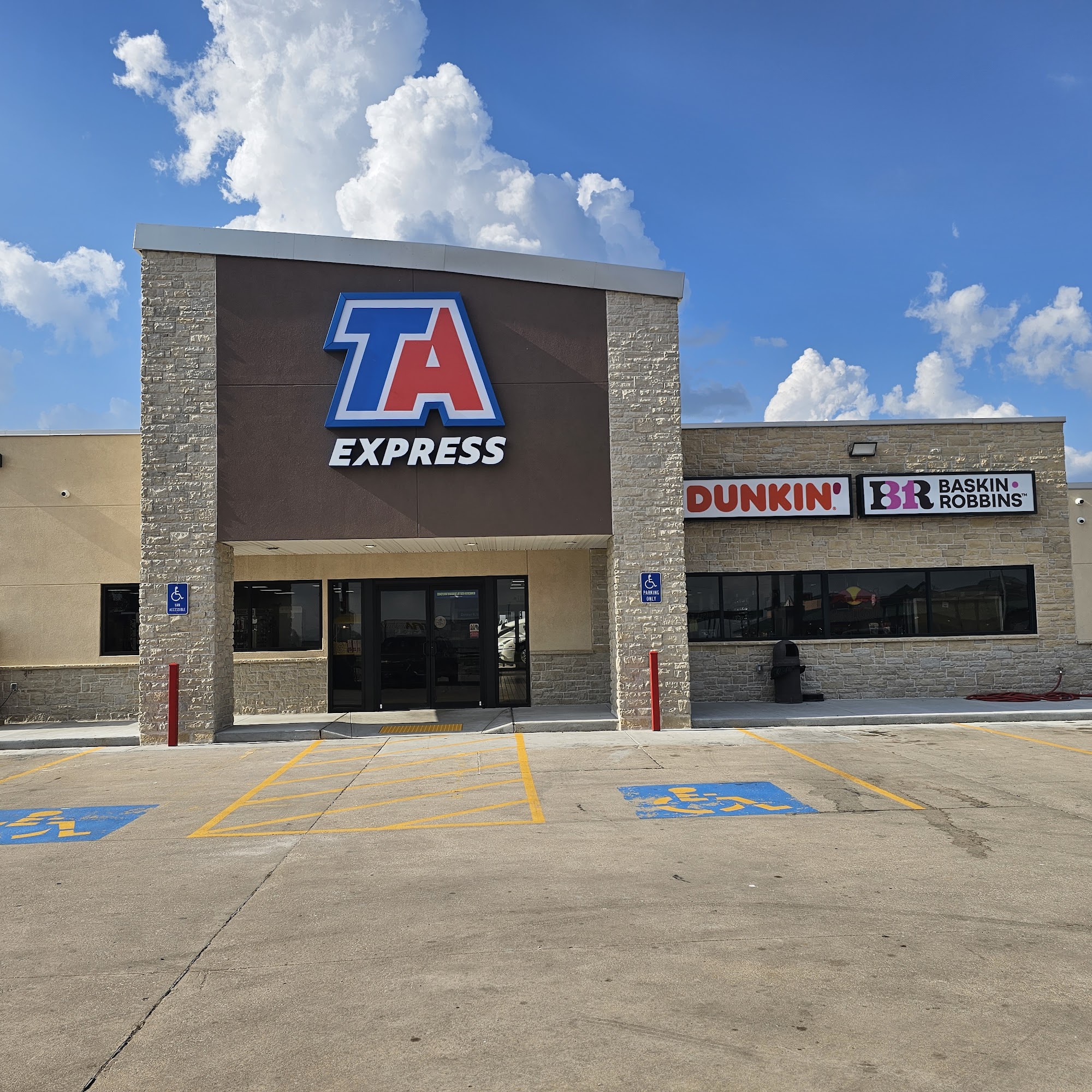 TA Express is a clean and friendly truck stop located near I-35. It offers a variety of food options, including hot and fresh cooked catfish, chicken quarters, fried shrimp on a skewer, and rare items like 4 Loko and juice. The store is large and well-stocked, with a clean restroom and spacious showers, making it a great place to rest or refuel. The staff is friendly and helpful, and the fuel pumps are easy to use with fair prices. Parking for trucks and trailers is available. The restrooms and showers are notably clean, and the overall atmosphere is calm and pleasant, especially compared to nearby busy stops. While service can vary for some providers, overall, TA Express provides a good experience for travelers looking for good food, clean facilities, and friendly service on their journey.
