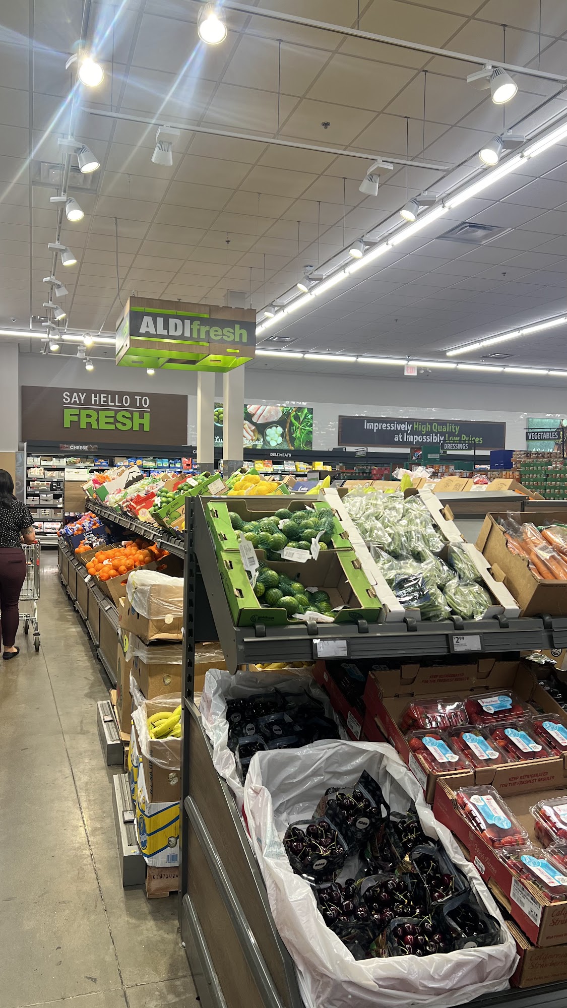 Not a lot of options, but great prices, quality produce, meats, etc. Bring own bags. Carts are a quarter, you do get it back when cartvis returned. Makes good sense to secure the carts, helps to keep costs low