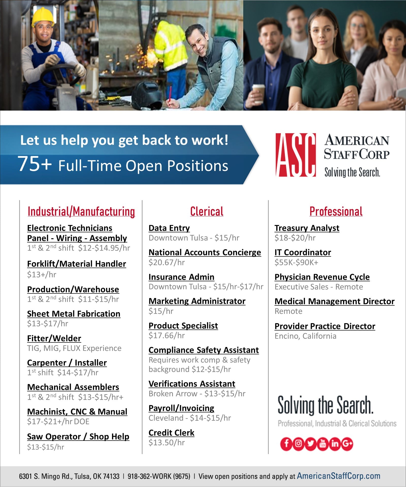 American Staffcorp staff is top notch. Desseray was very quick to respond and kept me informed throughout the process. I have a great job now. I would definitely recommend them.