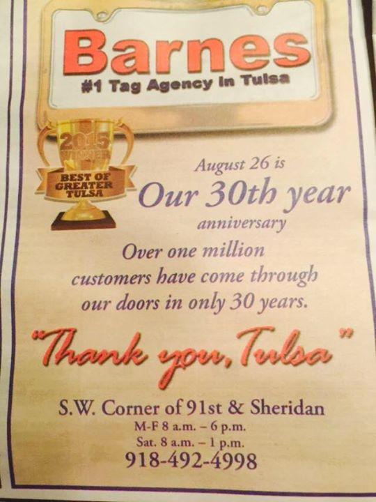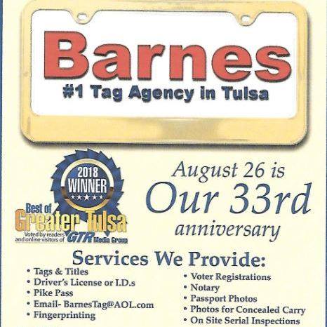 Just left the agency and again as always that is the best tag agency in Tulsa. Etta was the young lady that waited on me. She was absolutely amazing, efficient, and kept me entertained while I was sitting there. I live at 101st and Memorial and wouldn’t go to any other tag agency but Barnes. 5 stars every time.