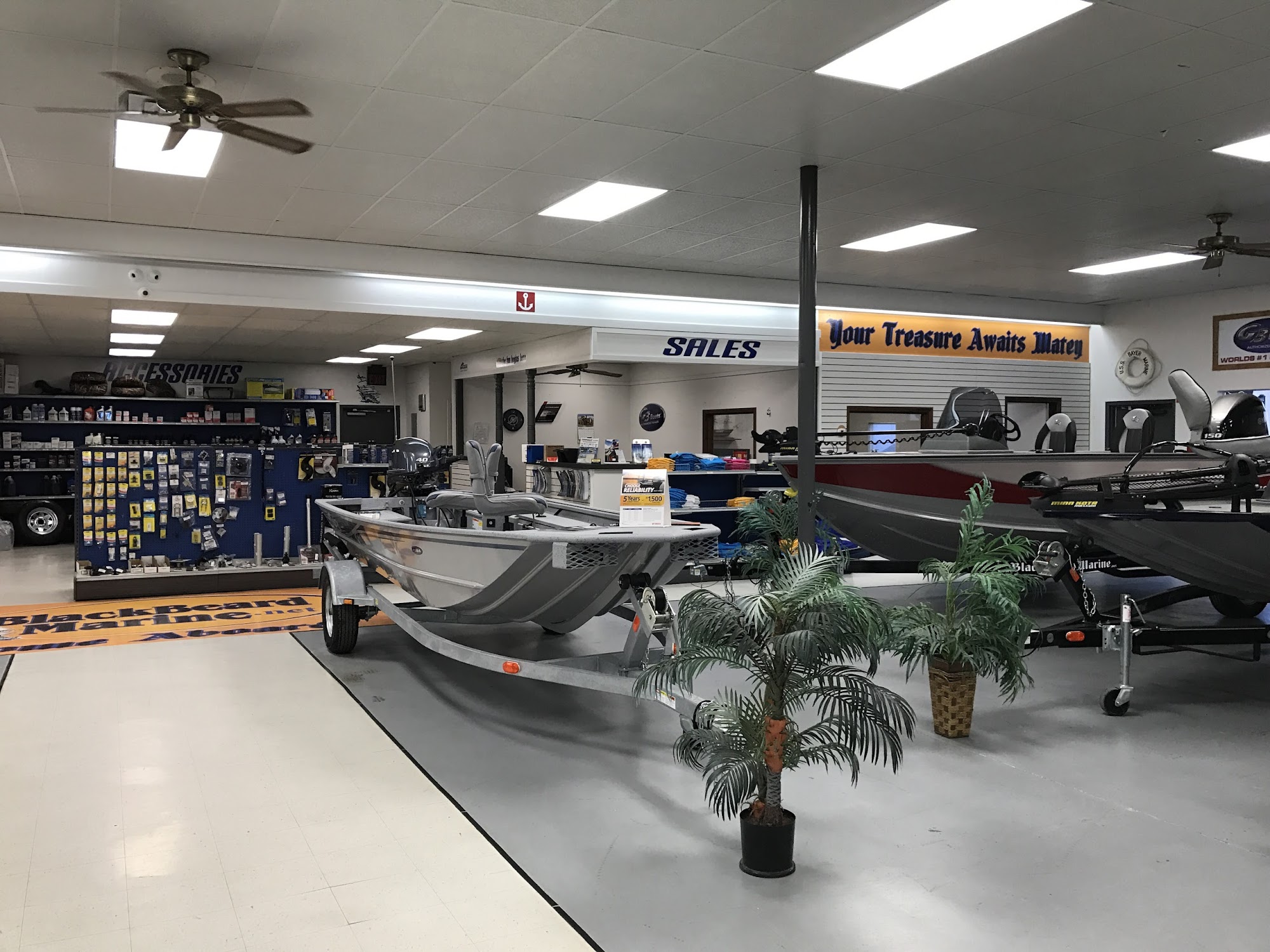 Blackbeard Marine Tulsa is a full-service marine dealer that offers new and used boats sales, parts, and service. They carry a wide range of marine lines, including G3 Boats, Skeeter Boats, SunCatcher Pontoons, Blazer, Aloha, and Yamaha. Customers report having a great experience at Blackbeard, praising the knowledgeable and helpful staff, the fair pricing, and the excellent after-sales support. The business is known for selling high-quality boats in high volume at low cost, with top-notch service and parts departments. Whether you're a first-time boat buyer or a seasoned enthusiast, Blackbeard Marine Tulsa is widely recommended as the best place to find the perfect boat.