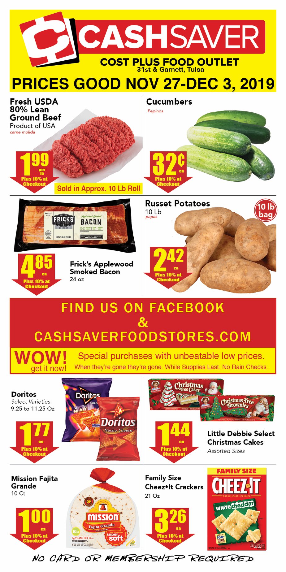 Cash Saver sells all items at cost plus a flat 10% surcharge. Prices are very affordable and quality is. The staff is friendly, attentive, and always smiles at the counter. Fresh items and hot food made to are available. Customers recommend checking receipts because the 10% wholesale cost and 0.75 taxes on a $5 purchase add. Some items like Mustard Greens are actually Turnip Greens, so check them. Many shoppers keep a deep freezer full after shopping here.