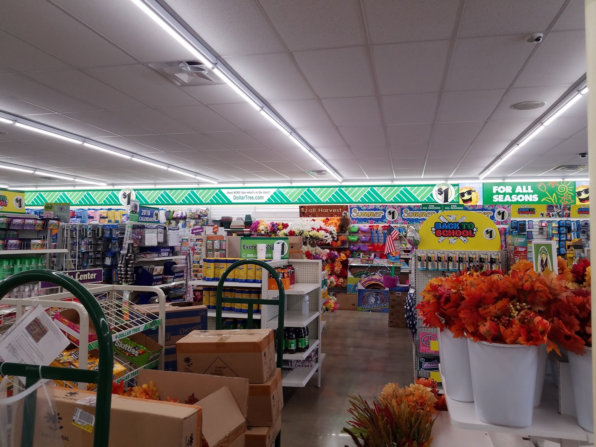 This dollar tree is alright. They've got lots of items but not as many as some dollar trees I've been to, and their staff is friendly. They always seem to have their restocking carts out and in the way of things on the shelves which is annoying. Other than that I have no complaints.