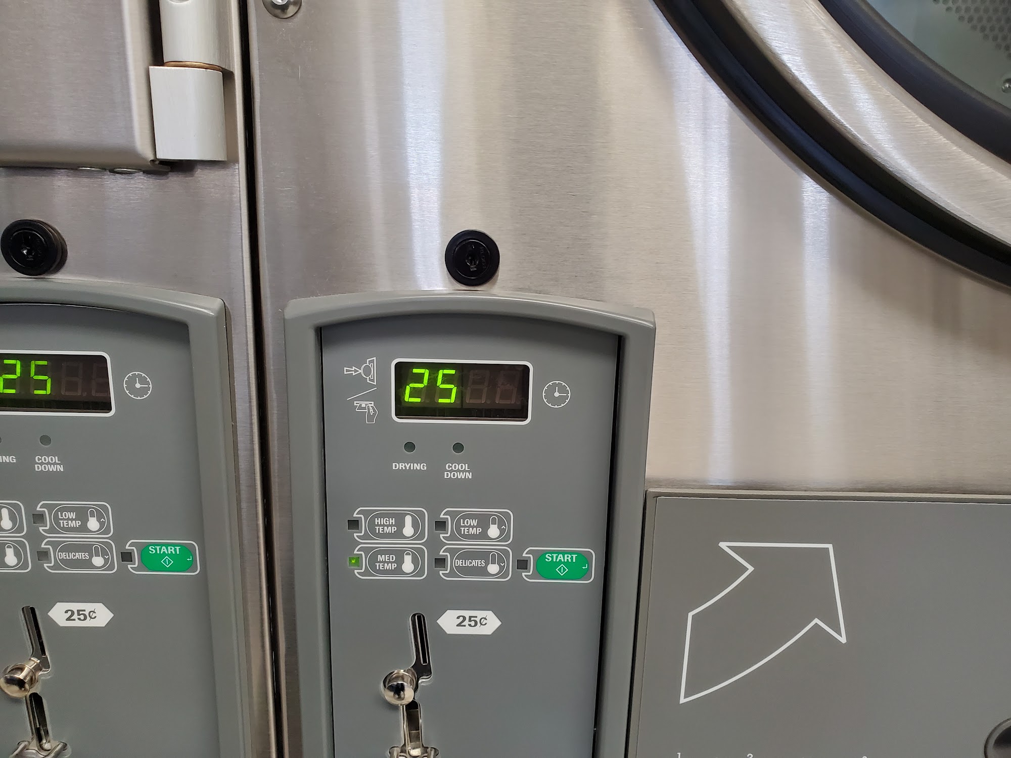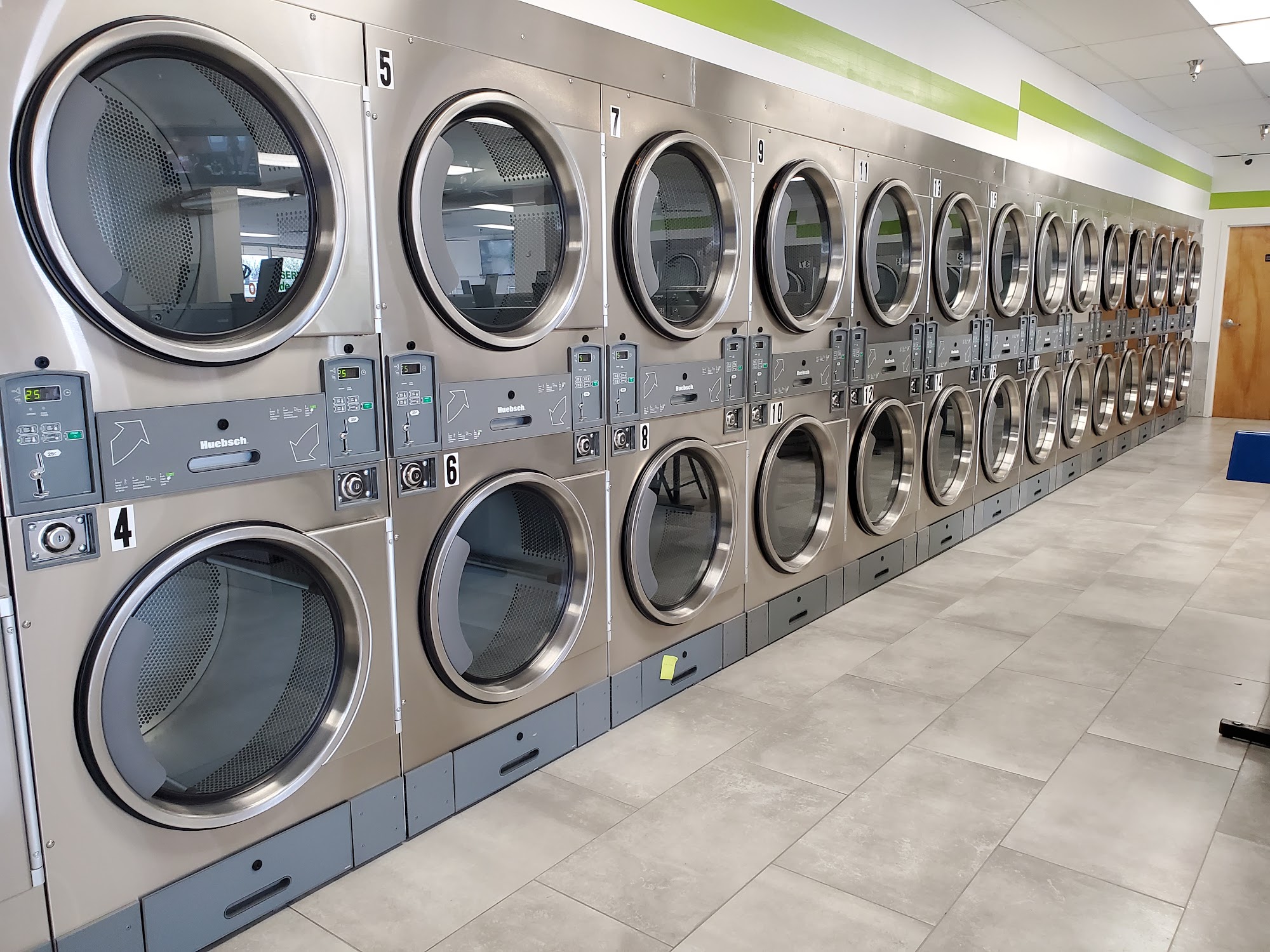 They have small medium and large washers. They have plenty of machines to change dollars 5's,10's and 20's to quarter's or coin dollars but no machines to change nickle's and dime's into quarter's that's the only thing they need to be the king of laundry.