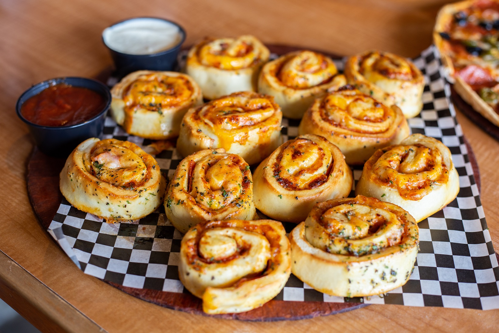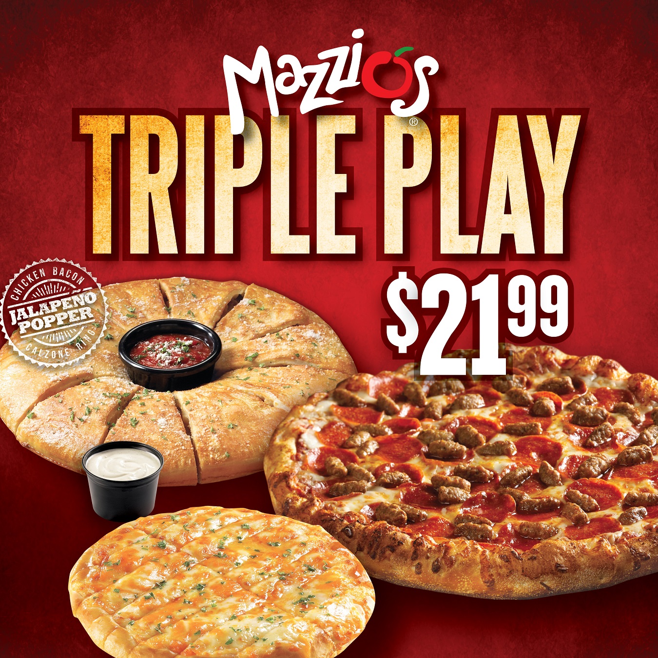 Purchased the new york style pizza, which by the way is the best thing to ever come out of mazzios, however i also ordered the bread sticks and 2 dippind sauces. I did not recieve any dipping sauce. The cheese sticjs were good but they would have been better with the sauce
