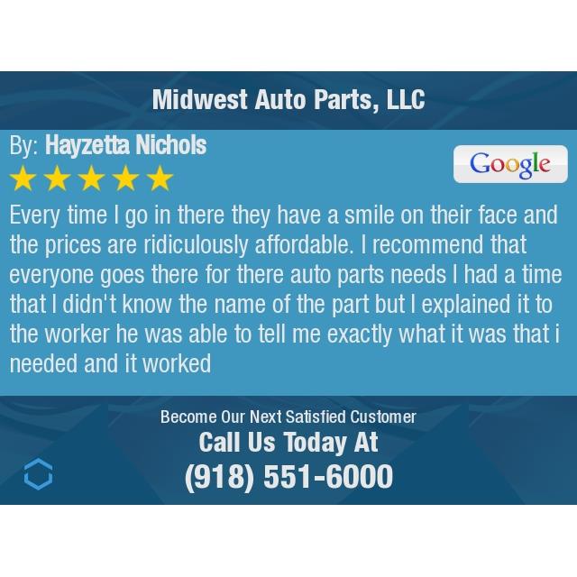 Midwest Auto Parts, LLC is Tulsa's biggest full-service auto salvage and the best junkyard in the area, second to none. It is a top-quality used auto parts business for cars and trucks, known for its great selection and low, great prices, often 50% less than expected. The staff is friendly, knowledgeable, kind, easy to work with, and provides excellent customer service, doing their level best to make the experience smooth and pain-free. They are very helpful in finding the right part, confirming stock, and retrieving items quickly, often getting customers in and out in about 15 minutes. If they do not have a part in their vast inventory, they will find it. While the self-service salvage yard environment can be dusty, intimidating, and uncomfortable due to weather, the business model offers parts in great shape from wrecked vehicles at prices that make repairs affordable. Many customers recommend the location highly, return repeatedly, and consider it the preferred auto salvage to shop and save money.
