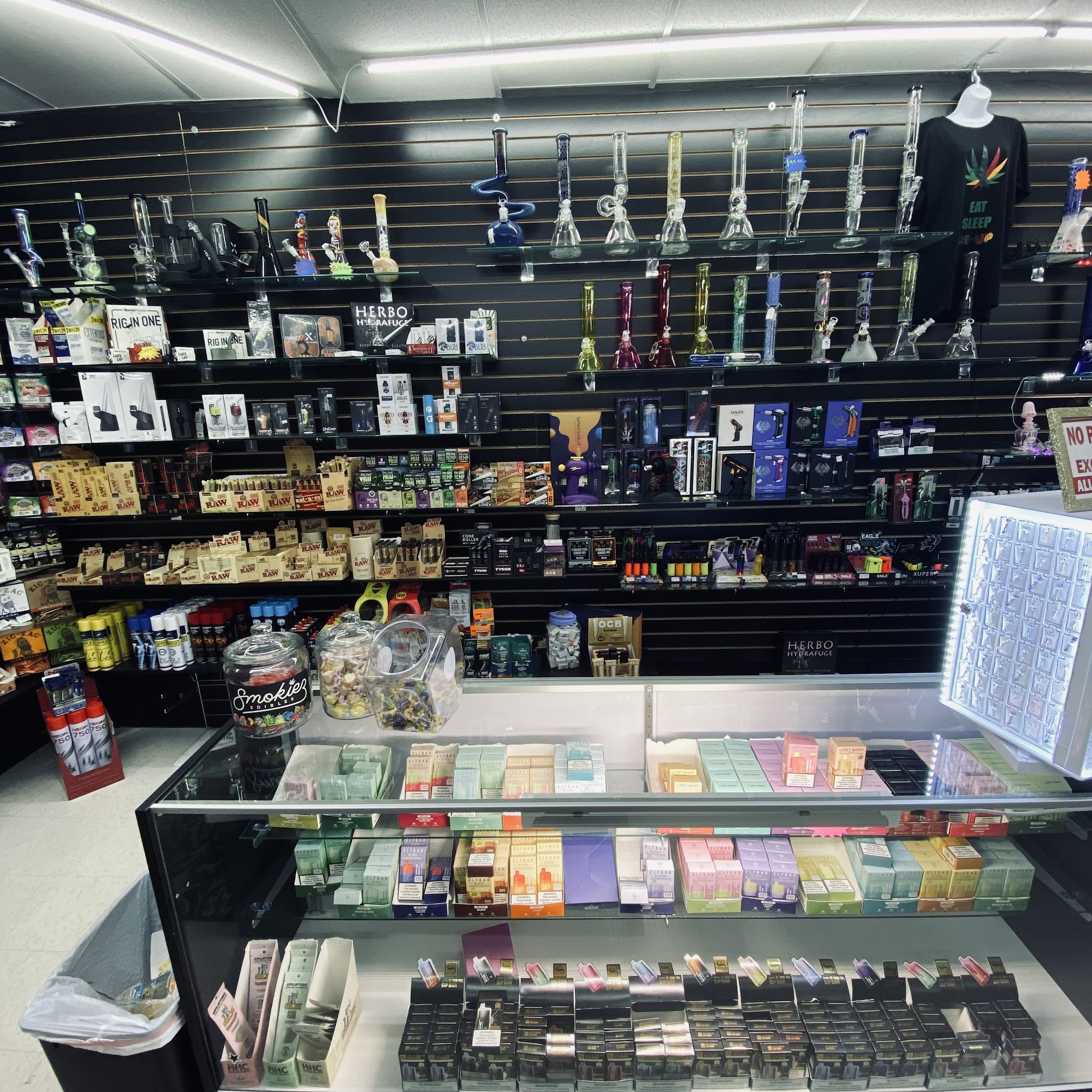 This place always has the Vapes I'm looking for the staff is really friendly and considering the type of neighborhood this place is in it actually is a little upscale it has very unique smoking utensils and anything you would need for like a torch or anything smoking related... Great shop I love it!