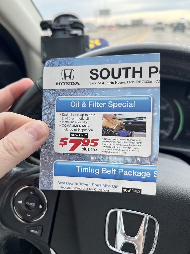 South Pointe Honda is a trusted Honda dealership located in Tulsa, OK, offering a wide range of Honda cars, trucks, SUVs, and minivans, along with financing, maintenance, and repair services. Customers consistently praise the dealership for its exceptional customer service, highlighting the professionalism and friendliness of the staff. From the car buying process to vehicle servicing, the team provides a seamless experience, marked by patience and no pressure. Staff members take the time to explain services clearly and keep customers informed throughout the process. Reviewers appreciate the efficiency and thoroughness of the service, with one customer noting a small tire leak discovered during routine maintenance. The dealership is recognized for its cost-effective solutions and the use of helpful tools like video explanations of inspections. Overall, South Pointe Honda is celebrated for creating a comfortable and supportive environment, making it a preferred choice for many in the Tulsa area.