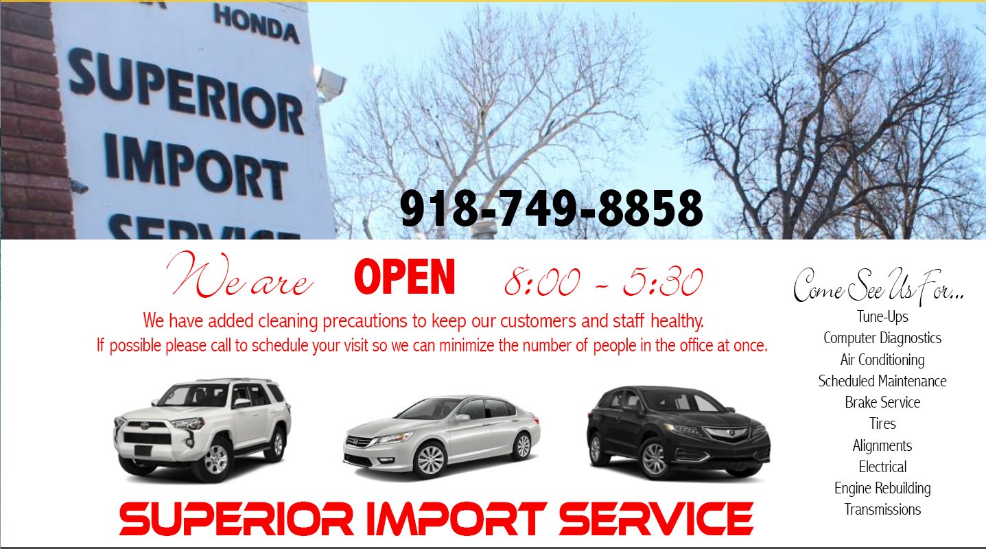 My mom has used Superior for years and talked me into getting a third opinion on my repair needs. Firestone $2800, Encinitas $3600, then Mike at Superior looked at it and said you don't need all that crap, I can fix it for $950. I'm now driving around Tulsa in a car that drives better than it has in years. Thanks Mike!!!