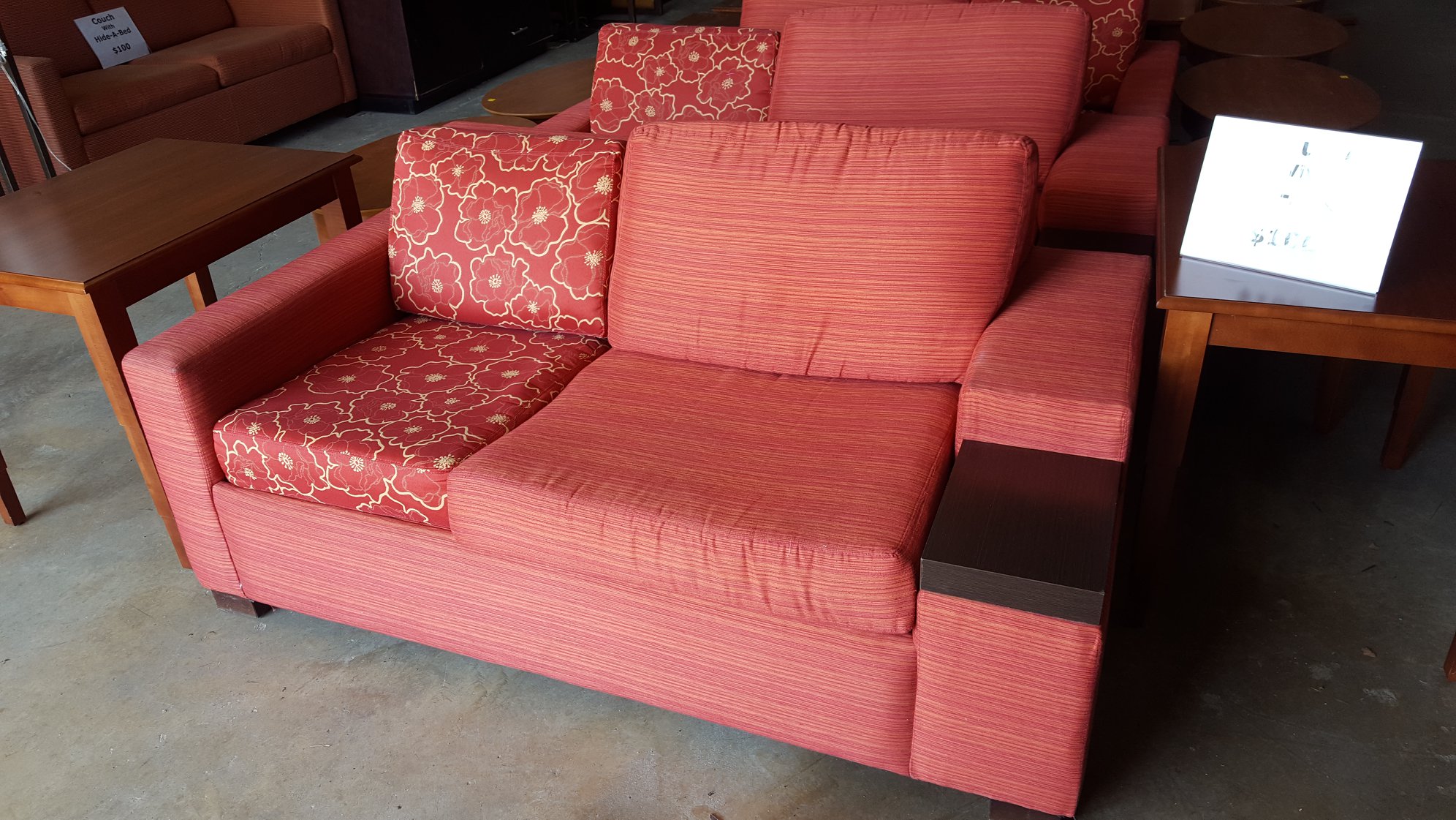 If you’re in the market for a huge mirror at a fantastic price- they’ve got ‘em! Hotel furniture, desks, sleeper sofas, coffee tables, etc. They’ll negotiate with cash.