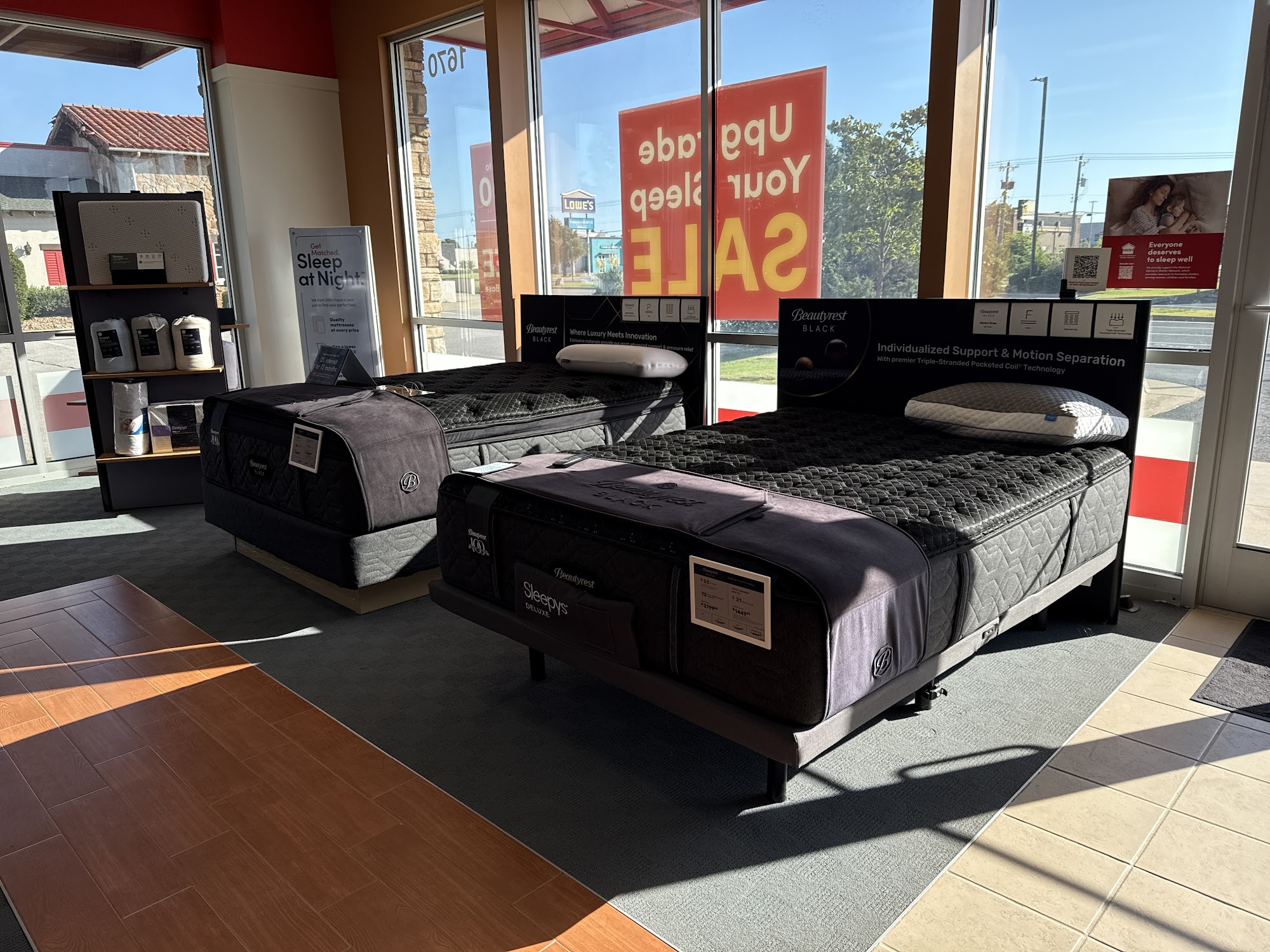 The sales person was very kind and was able to get us what we needed..the store was clean easy to find the mattresses you want to look at ...it was all in all an enjoyable experience and I hate shopping .
