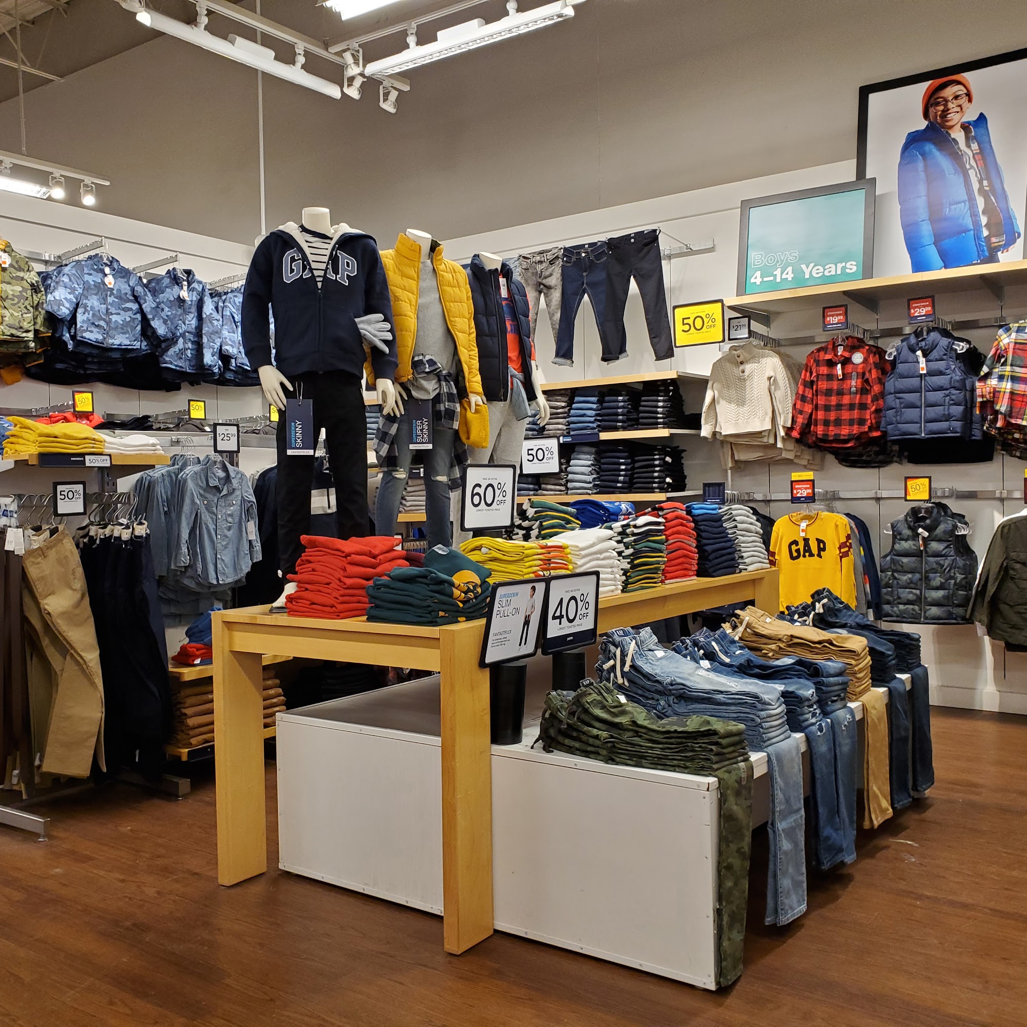 The Gap Factory store in Ajax offers a wide variety and wide selection of apparel and accessories for men, women, and kids, including timeless essentials. Prices are mostly affordable and there are good discounts. The staff are nice, friendly, and provide an absolutely positive vibe, with management noted for going above and beyond to help. The store offers quality that is just right, positioned between its more affordable and more premium sister brands. Customers enjoy the convenience of online purchase with in-store pickup. The price and the discounts are always worth it, making it a great store to visit.