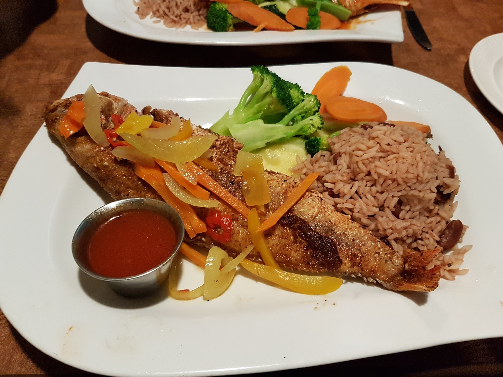 Authentic Jamaican cuisine. Food taste great a must try is the fried chicken and curry goat. There are many places in durham that say they cook Jamaican food but nome that beats the flavour and seasong of the food at red snapper cafe. And did I mention the soup yum yum.