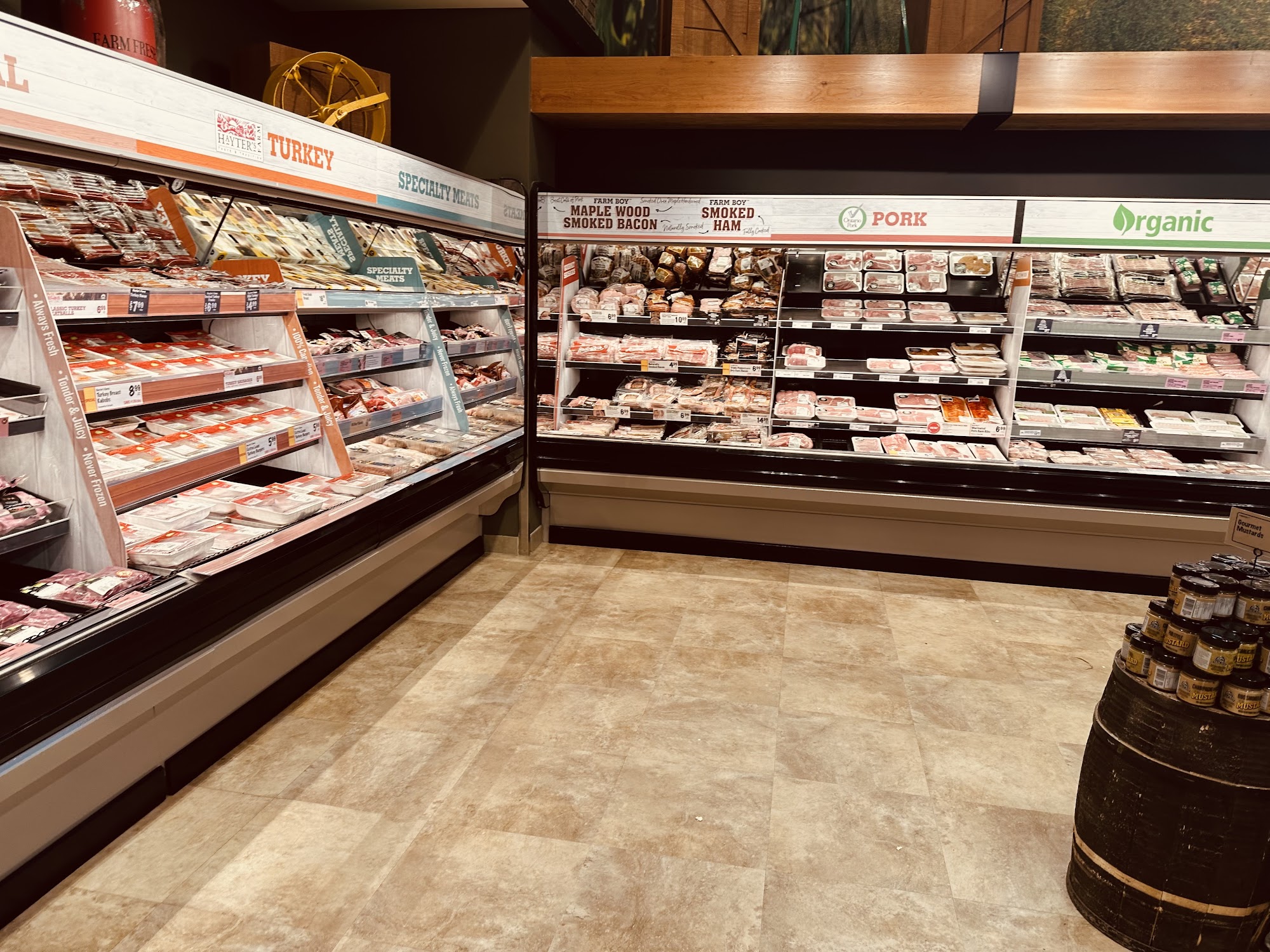 Farm Boy is a spacious store with a great selection of fresh produce, fruits and vegetables, dairy, and meat. The products are always fresh, flavourful, and of high quality. It offers an excellent selection of its own brand products, including prepared items like hamburger patties, a hot table, and dishes for holiday dinners. The bakery is on point, featuring real Montreal-style bagels, and the selection of cheeses is top shelf. While it carries predominantly its own goods and is somewhat more pricey than competitors, it offers a unique variety not common for the area. Prices are reasonable and match the quality. The staff is super friendly, polite, and helpful, contributing to a pleasant shopping experience. It is convenient for both daily shopping and bigger purchases.