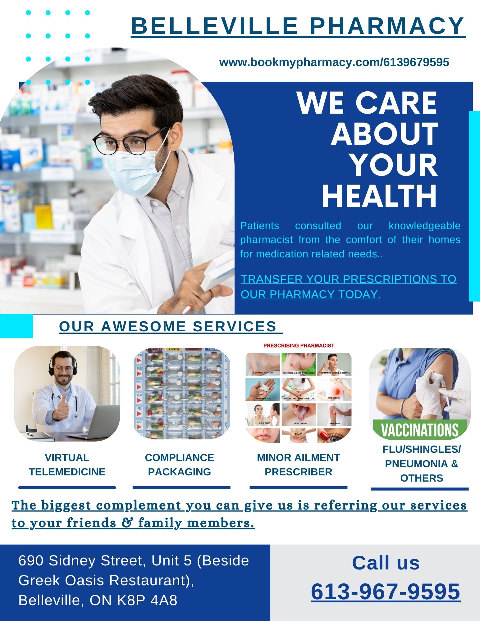 Belleville Pharmacy is a highly recommended pharmacy that provides excellent customer service and personalized care. The pharmacist, Maulik Vaghela, has been praised for his professionalism, friendliness, and knowledge. Customers have had great experiences getting their COVID-19 vaccinations and PCR tests at the pharmacy, with Maulik taking the time to explain the process and accommodate their needs, even for those living out of province. The pharmacy has been described as a vast improvement over larger, impersonal pharmacies, with outstanding customer service and a willingness to go above and beyond for their patients. Overall, Belleville Pharmacy is a trusted and reliable healthcare provider that consistently delivers a great experience for its customers.