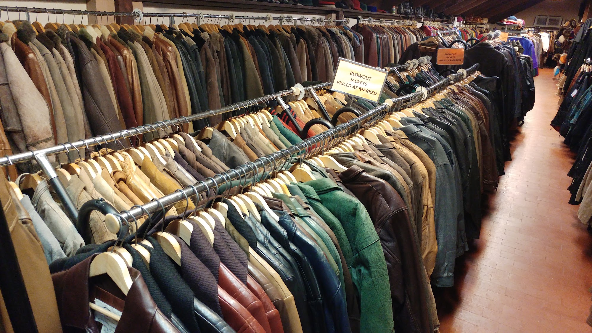Today was stuff a bag sale, On upper level. Got 4 pairs of pants, 2 turtle necks, sweater, bench sweater for 50.00. When totaled the price tags it was approx 450.00. Sale on till stock is gone for new stock to replace it.