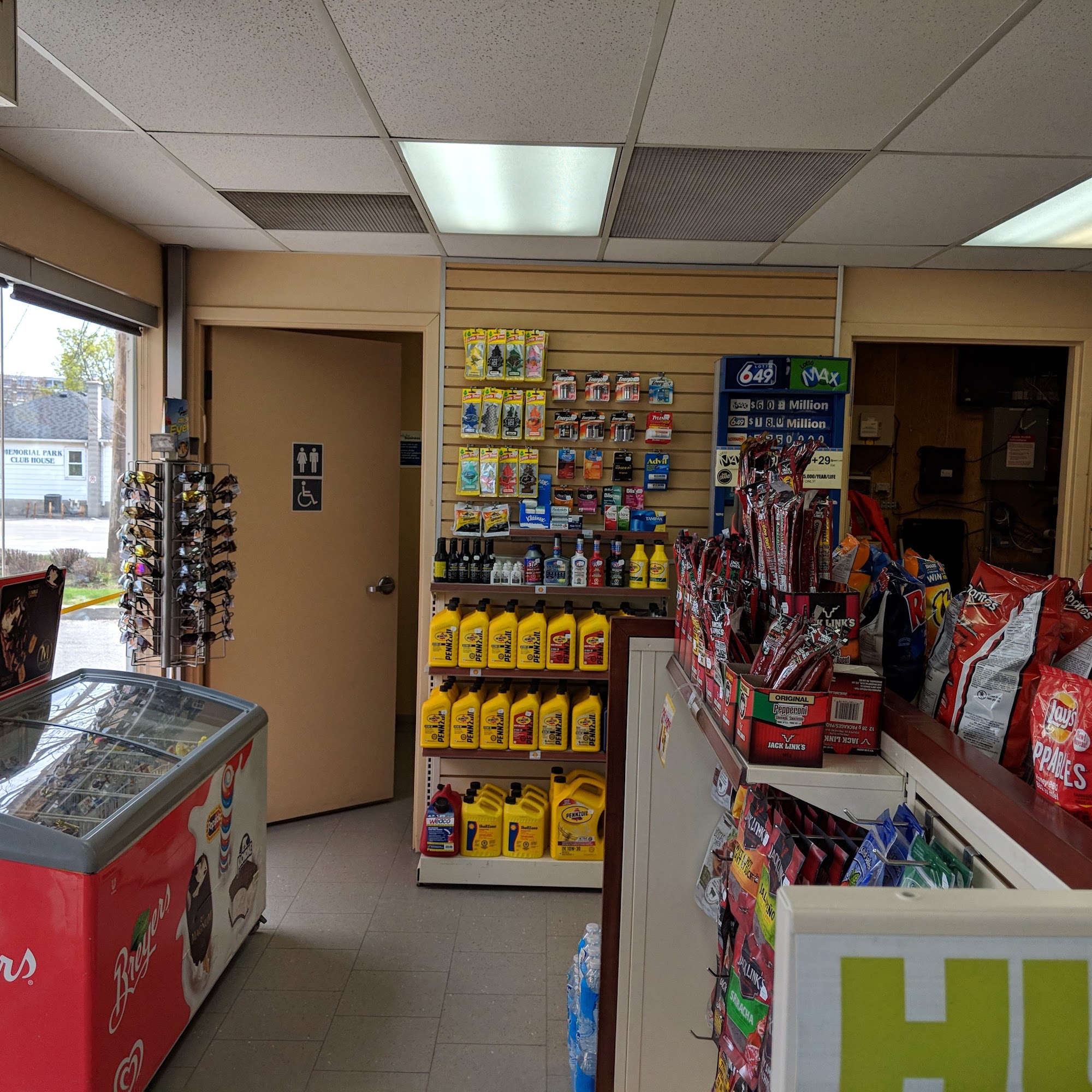 Small service station. Great location, gas attended was friendly and helpful. Bathroom was clean. Lots of items in store to choose from.