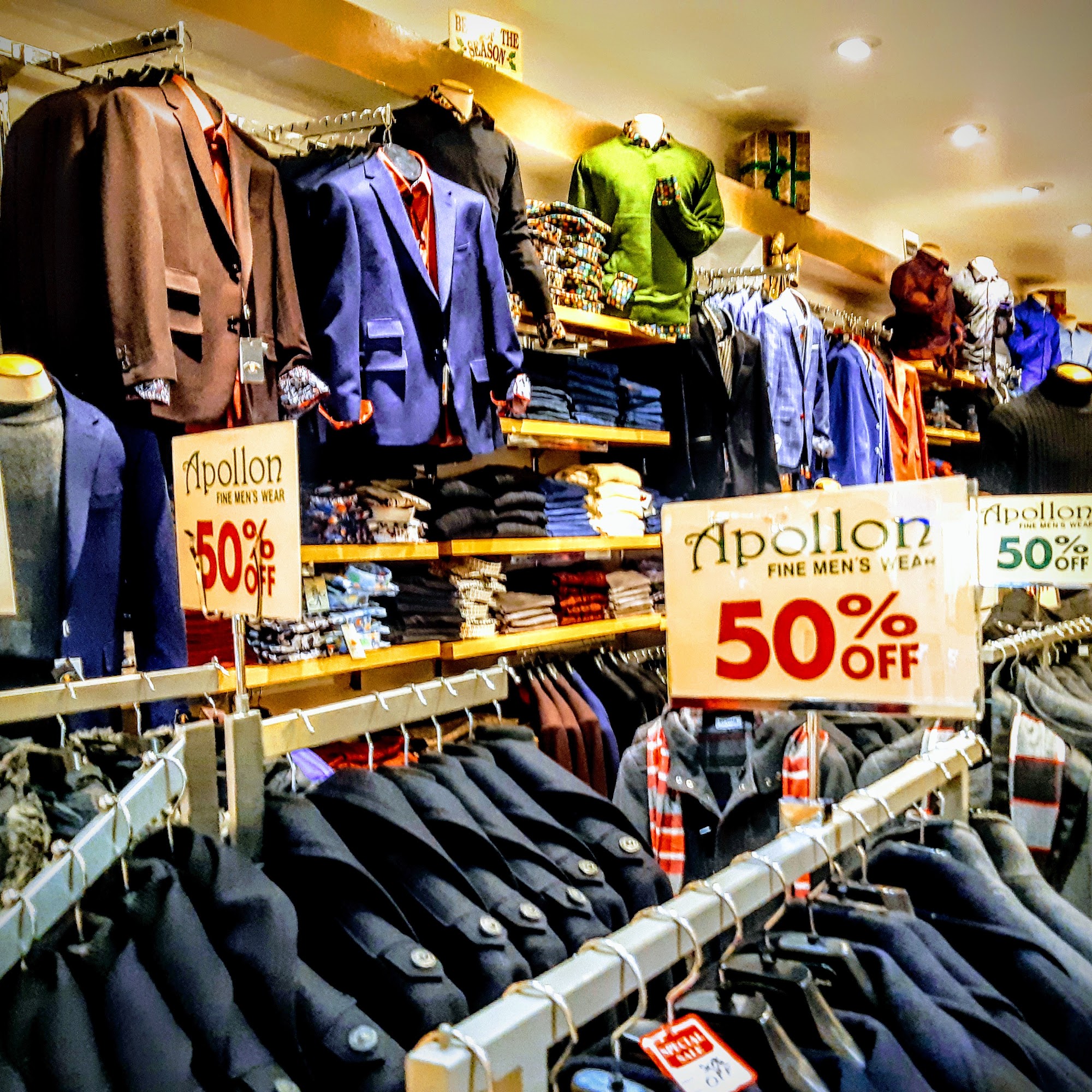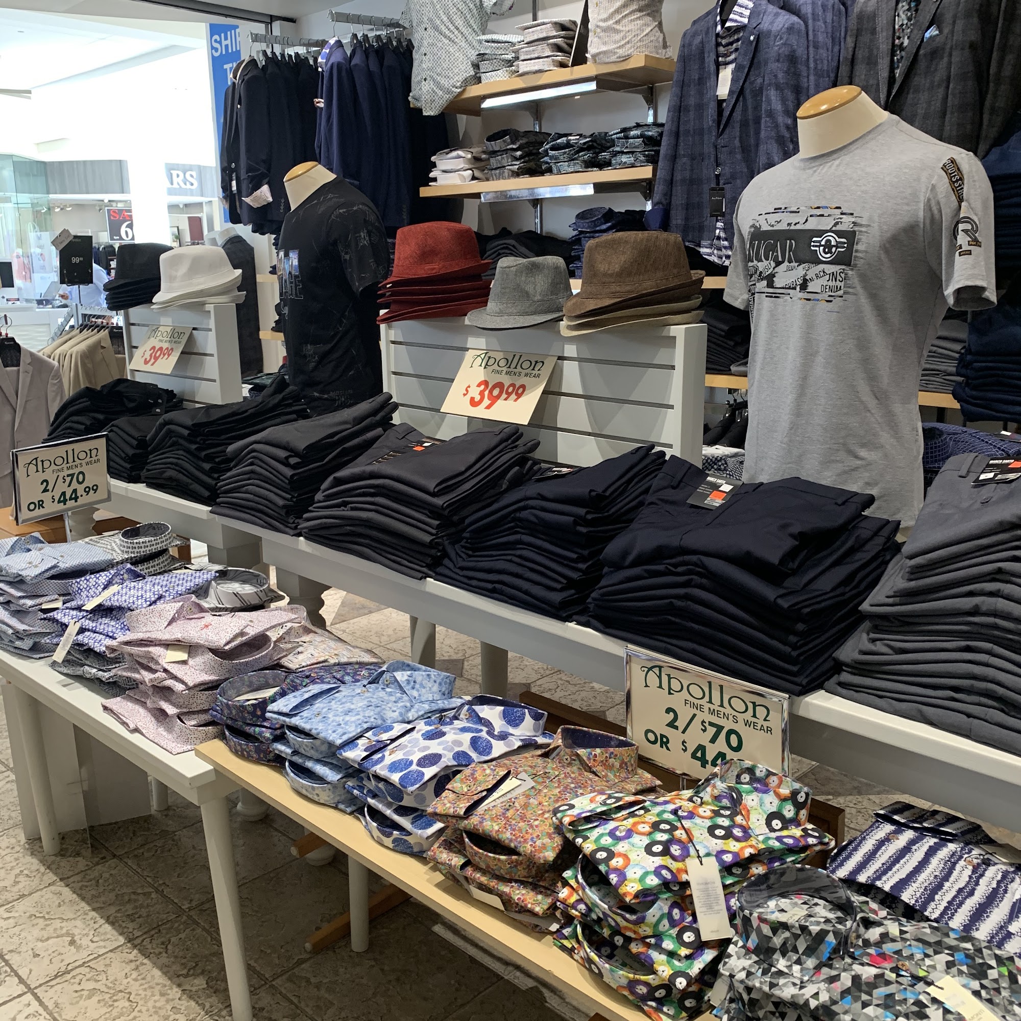 Apollon is a store for men's fine wear and business attire, including suits, shirts, and accessories. Customers absolutely and highly recommend visiting this shop for clothing needs, with many calling it a 5-star store. Reviews highlight a great selection and very reasonable prices, often better than competitors. The staff receives consistent praise for outstanding, friendly, and attentive service. They are described as knowledgeable, with a great eye for detail and for putting together a perfect suit. Employees listen carefully to what customers are looking for, provide solutions and alternatives, and take their time to find exactly what is needed. The service is classy, with perks like an espresso offered while shopping. The store also excels in alterations, with a fast turnaround time and a tailor close by to ensure a perfect fit, even on tight schedules. The overall experience is frequently called amazing, with exceptional customer service that encourages customers to return for all future needs.