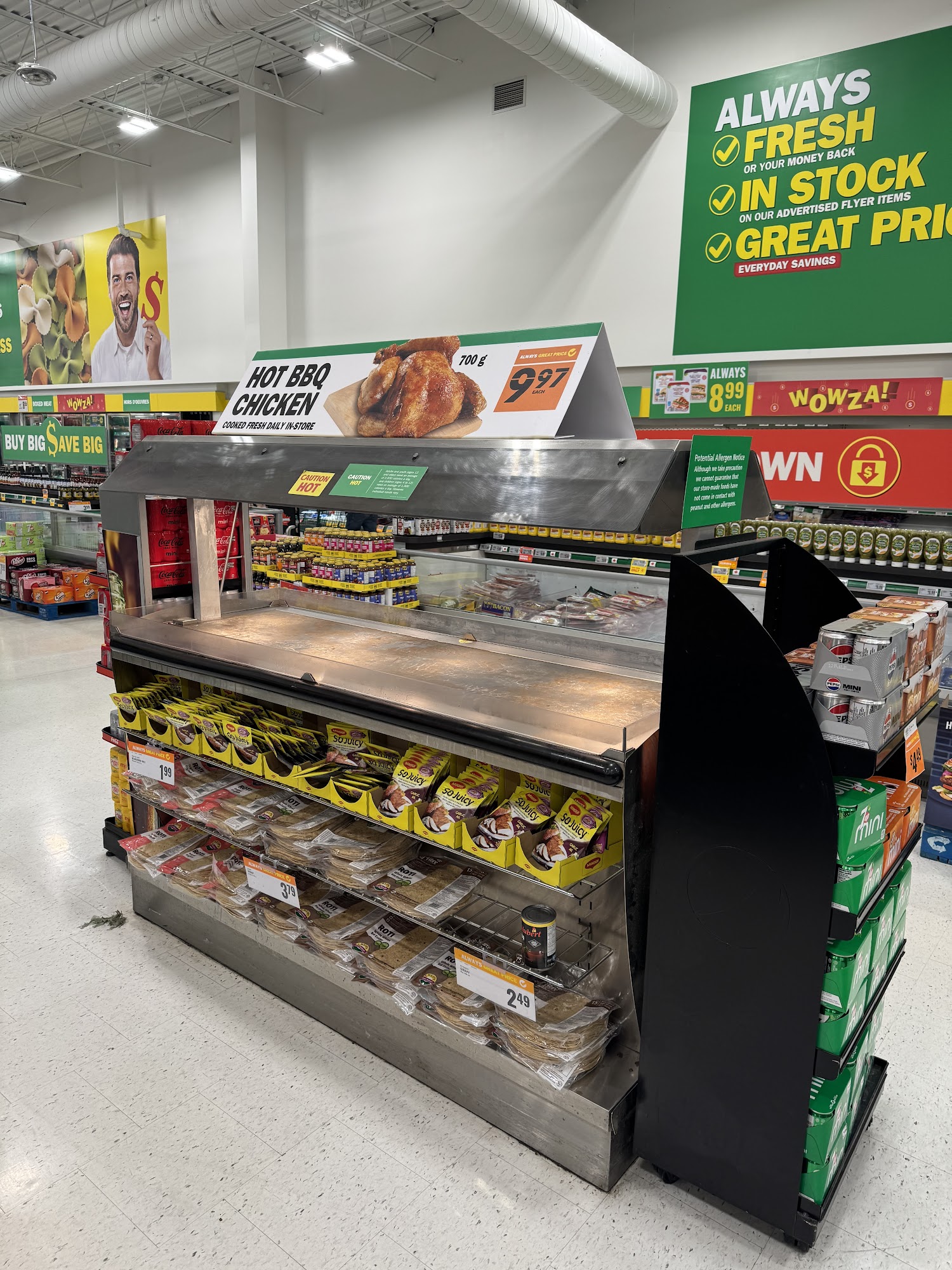 Food Basics Cambridge has a great selection of products, drinks, and alcohol. However, there's never any hot chicken when I go—disappointing if you're craving something ready to eat!