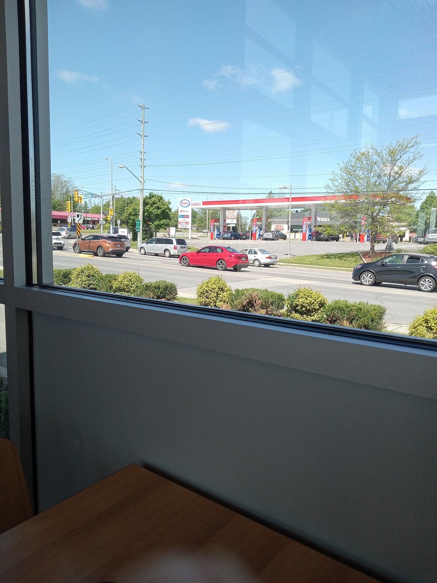 The tim's here is fast at their drive thru, good service and usually good gas prices here