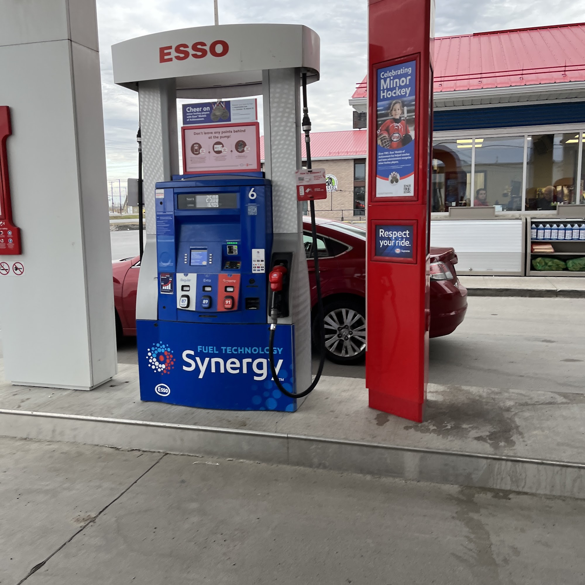 Esso offers a convenient location close to the highway and a Tim Hortons, making it easy for drivers to stop. The station features clean facilities, easy access to pumps, and a spacious parking area suitable for trailers and large vehicles. While some customers have experienced issues with the pump and the lack of full-service options, the store provides a good selection of products. Overall, it's a practical stop for fuel and supplies.