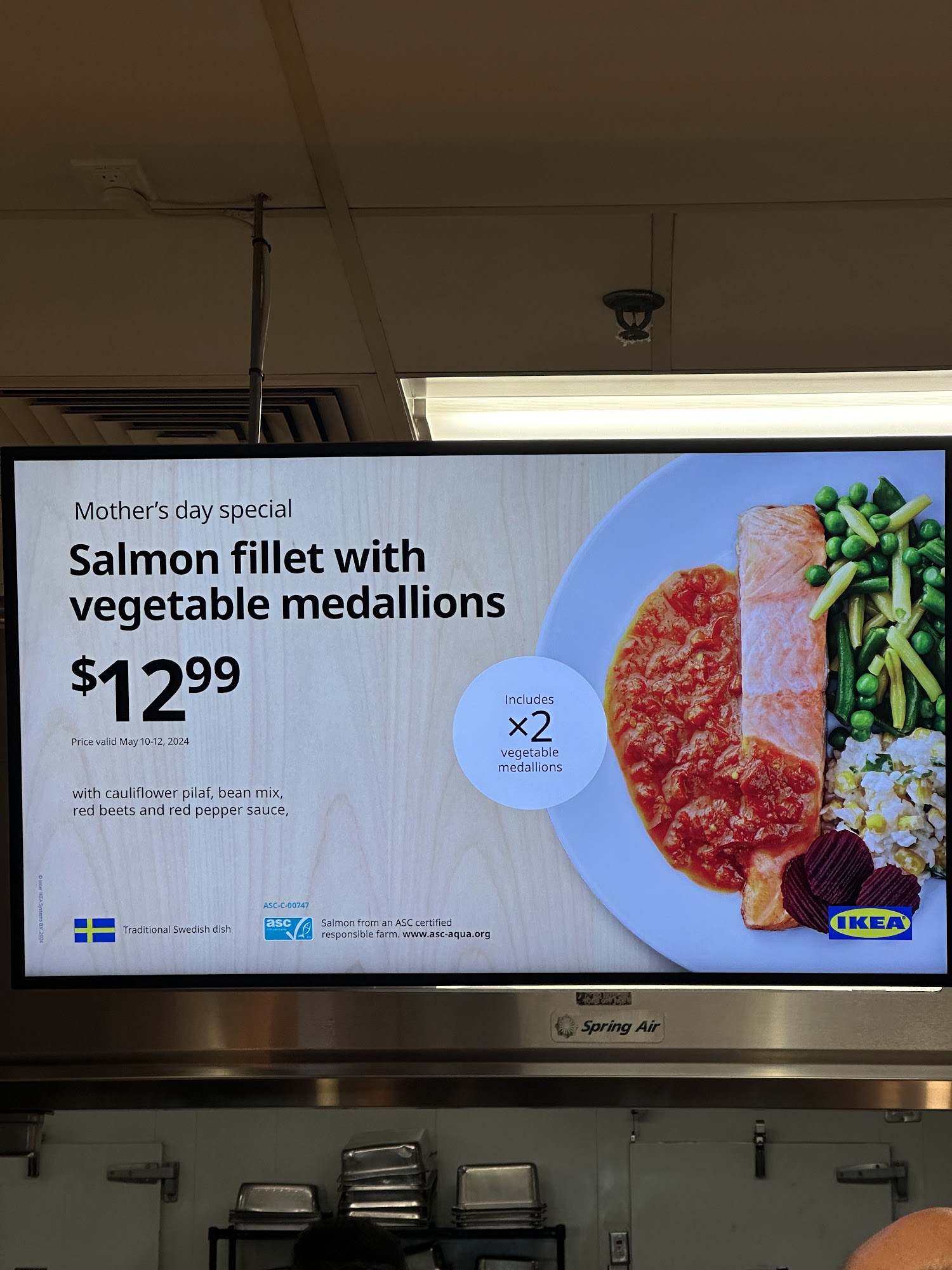 IKEA Vaughan restaurant offers a variety of food inspired by Swedish traditions, including meatballs, salmon, fish & chips, salads, desserts, and beverages like coffee and tea. The menu also features soft drinks and sweet treats, with vegetarian options such as veggie dogs. The food is known for being very affordable, with items like hot dogs costing around one dollar and meals generally priced between seven and eight dollars. The restaurant creates a Swedish atmosphere that adds to the experience and makes it a fun place to visit. Many visitors appreciate the sustainability of the food and the friendly staff working hard to serve customers quickly, despite the busy and crowded environment. However, some mention that the restaurant can be messy and that service may be slow at times, leading to cold food. It is considered a good spot for snacks or light meals, especially for those staying nearby. Overall, IKEA Vaughan restaurant is praised for its cheap prices, casual vibe, and vegetarian options, making it a popular choice for a quick, satisfying meal.