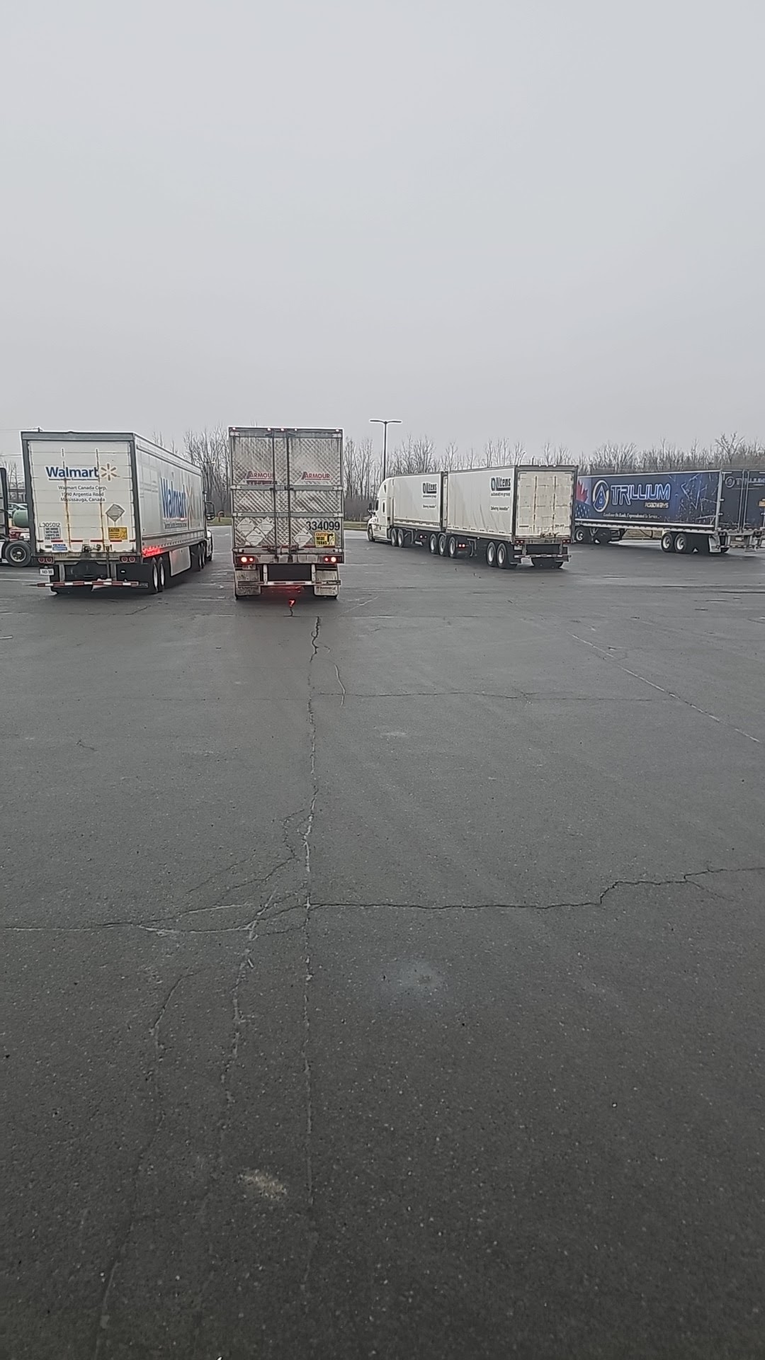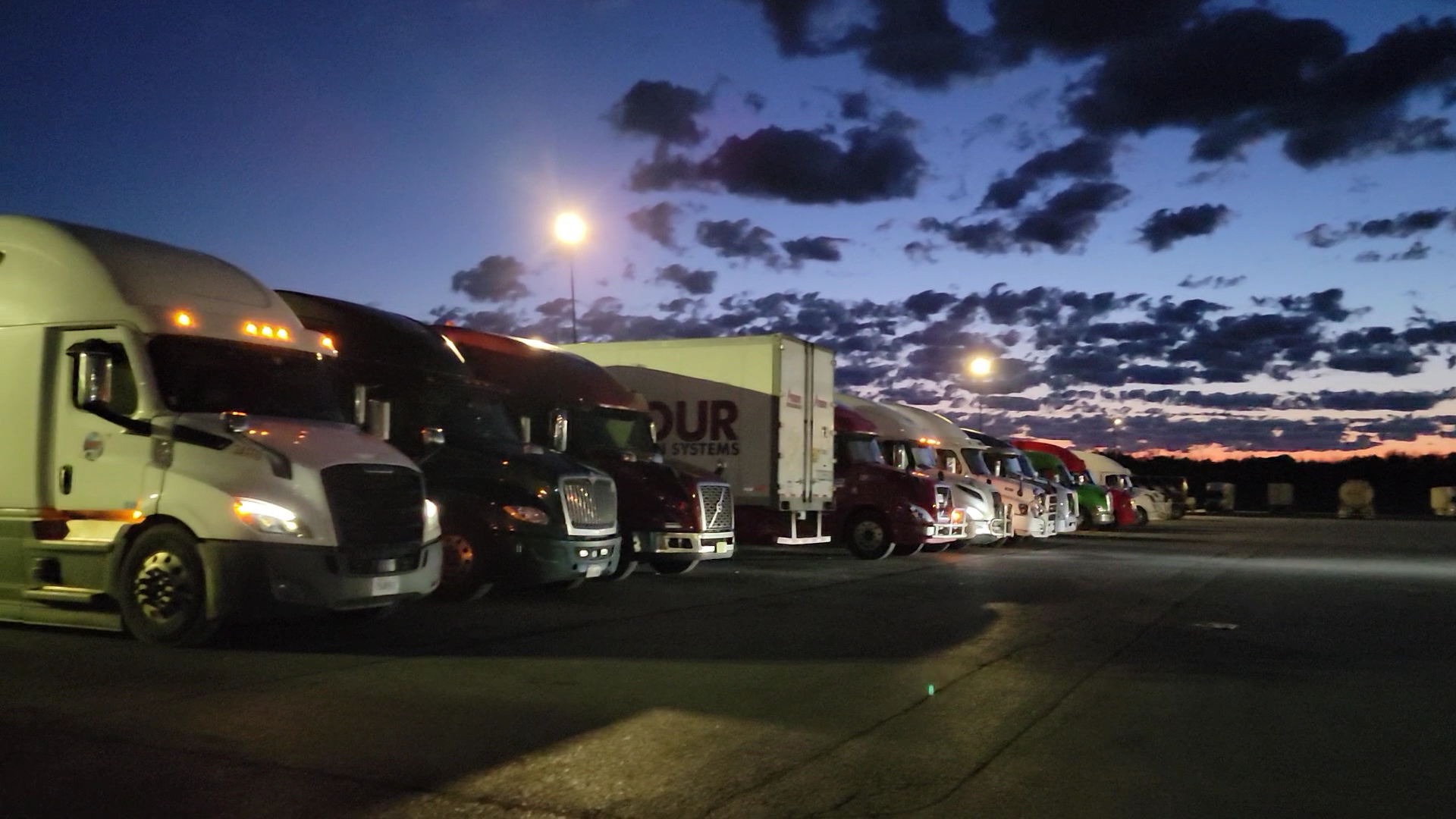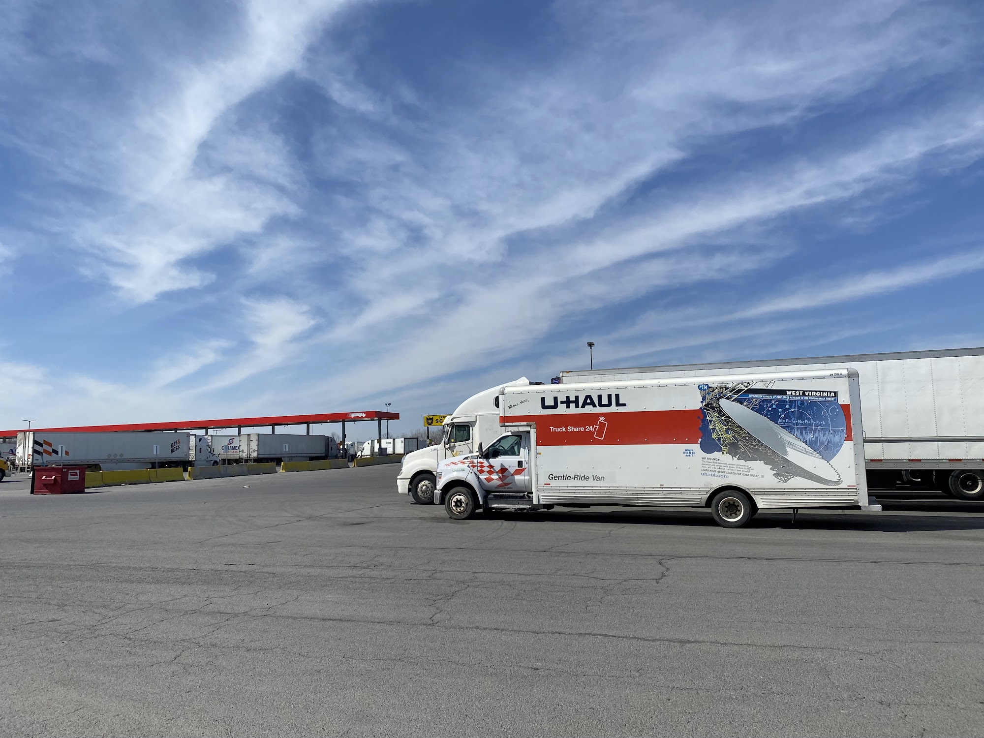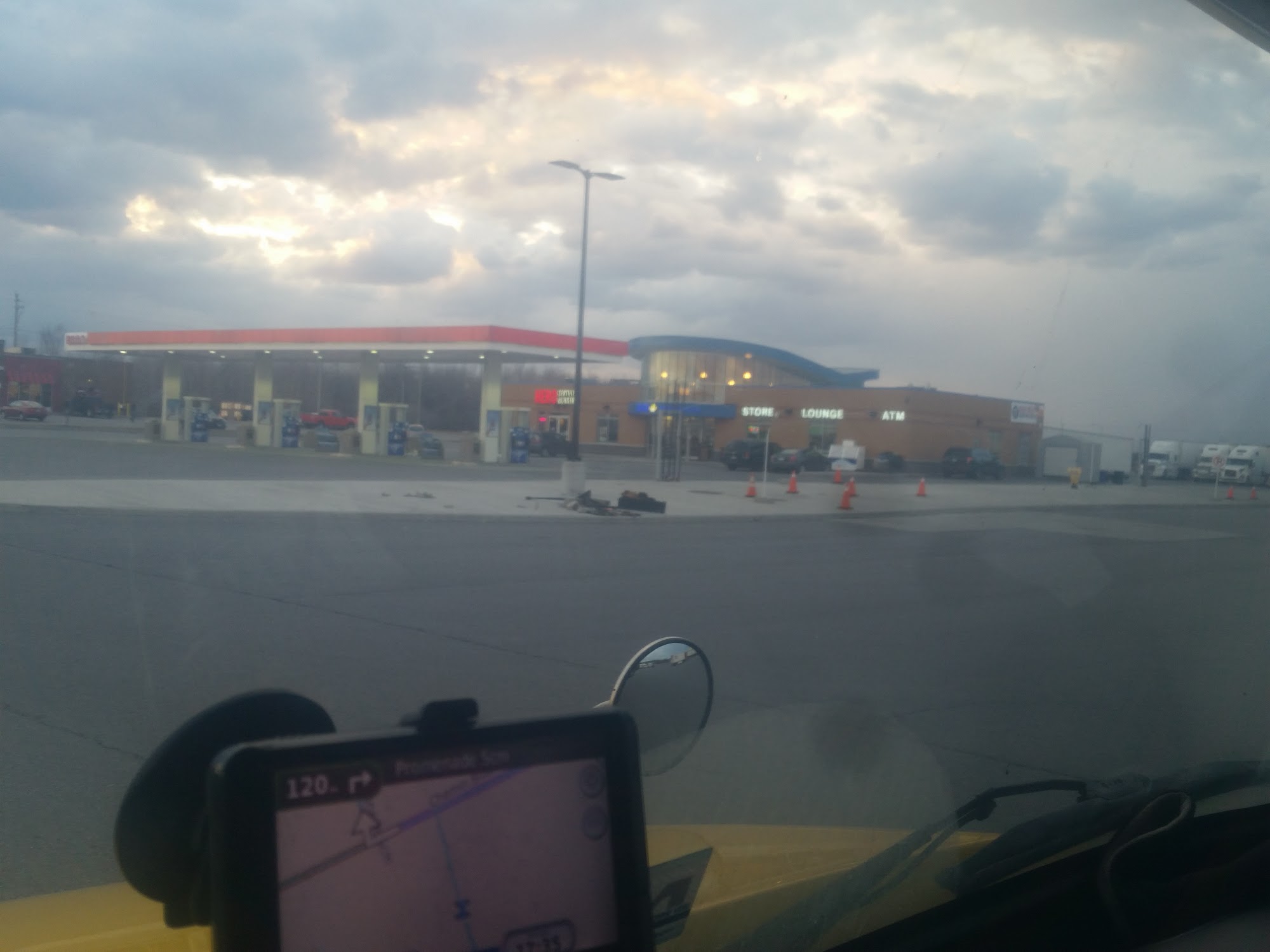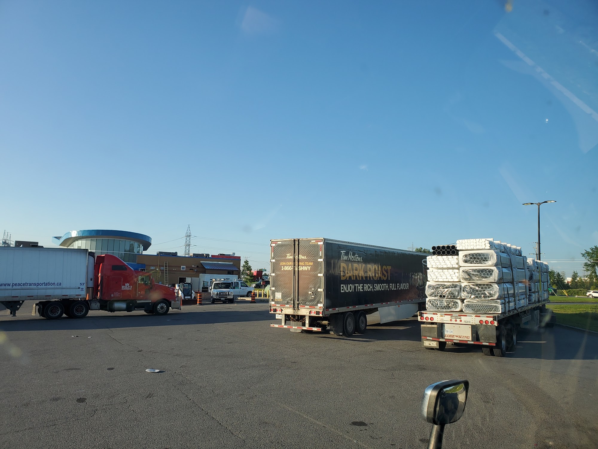 Big truck stop Tim Hut coffee close Burger King shower service Big parking lot