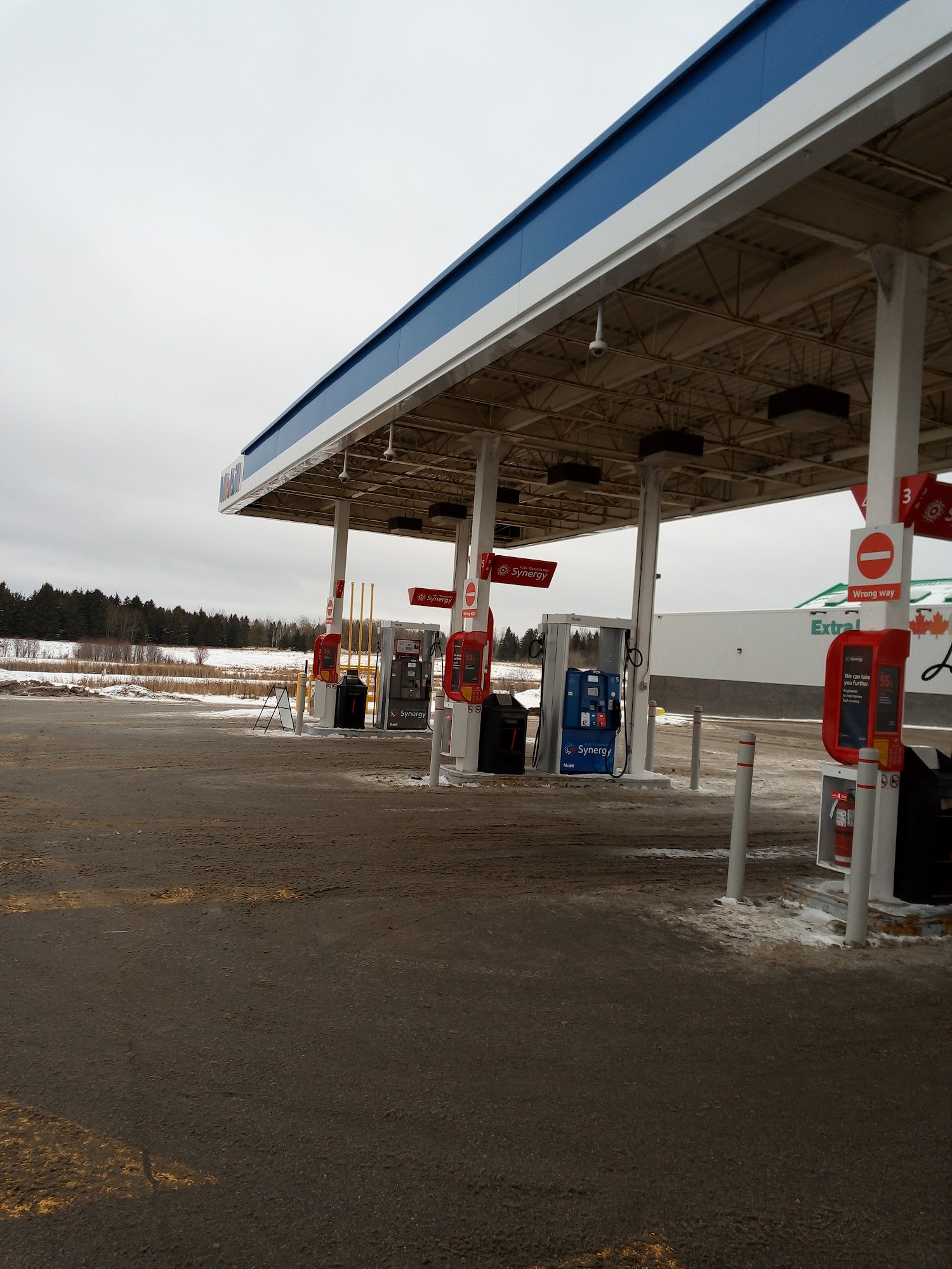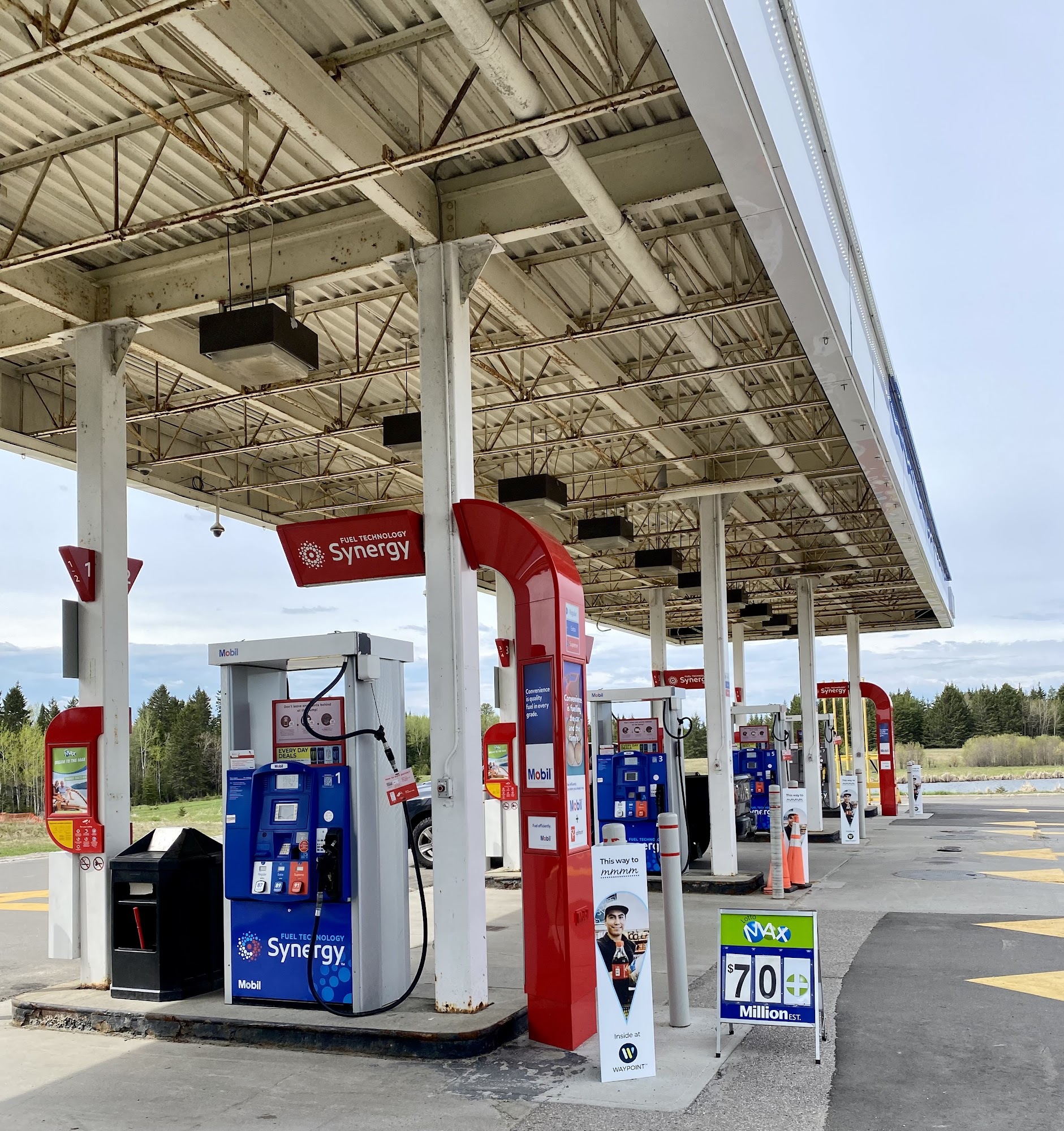 Mobil is a regular gas station offering gas and Diesel. It is an Esso where optimum points cards can be used. There is a small convenience store. The pumps are close to the edge of the parking lot, which can be awkward for larger vehicles and trucks, but it is doable. The station has good prices and good quality fuel. The staff is friendly, making it worth a visit.