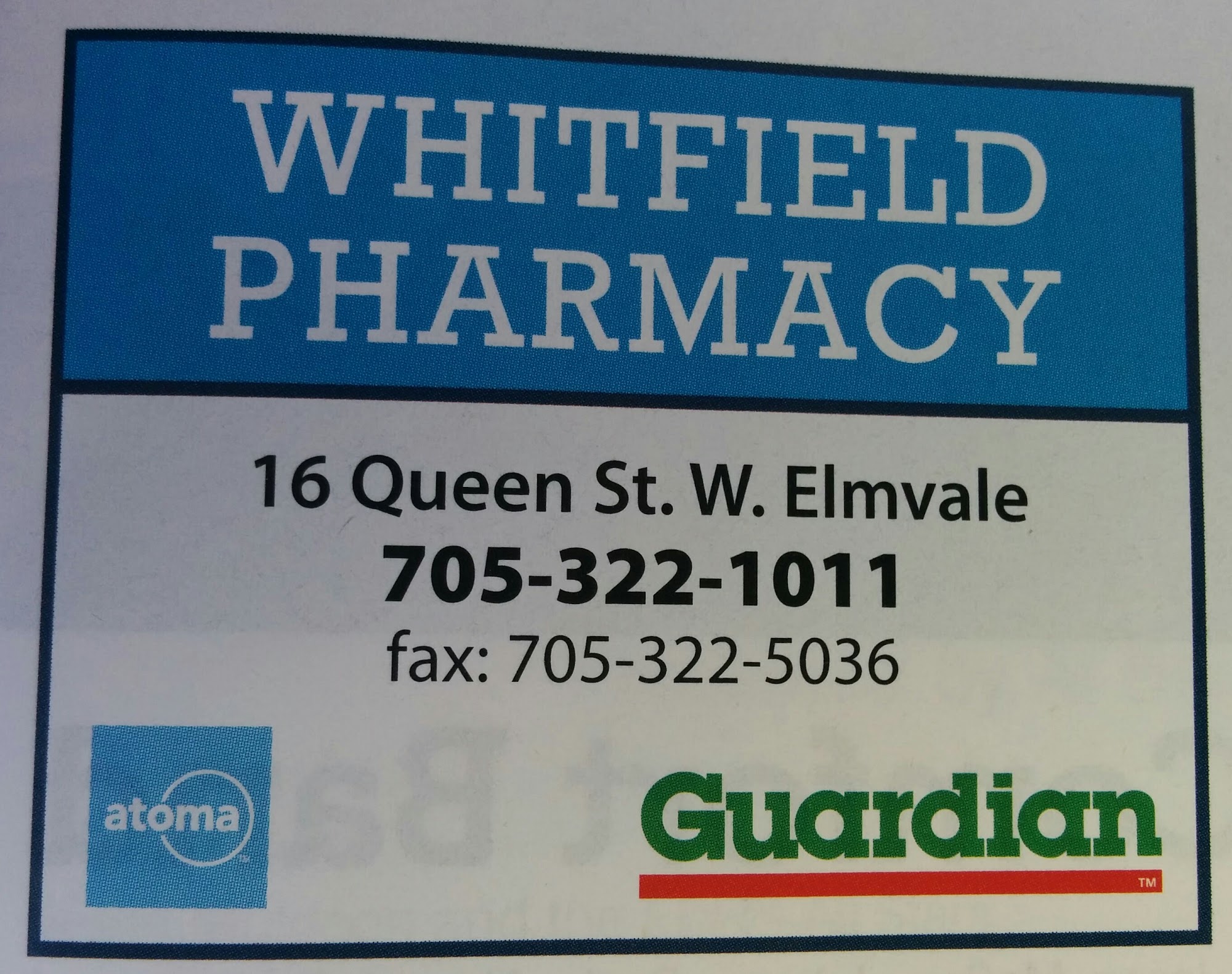 Guardian - Whitfield's Pharmacy is a local pharmacy where people are treated like a neighbour. The dedicated pharmacists are very nice and provide support for all health and wellness needs. Services go beyond prescriptions to include monitoring, immunizations, and wellness counseling. There are generally short waiting times, and appointments for services like COVID booster shots are easily accommodated. Prescriptions can be easily transferred. The staff is always there to help and answer any questions. It is a great place and more than just a pharmacy.