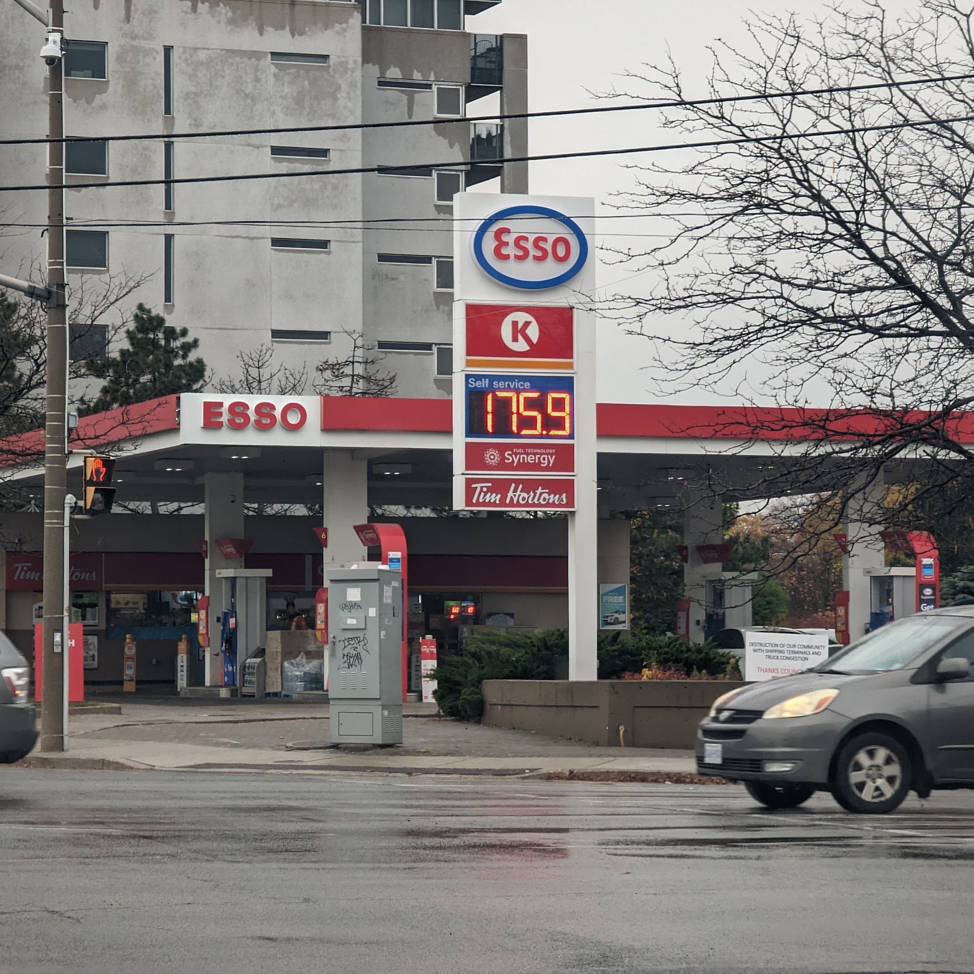 Convenient location by QEW. Has Circle K convenience store, Esso gas and carwash.