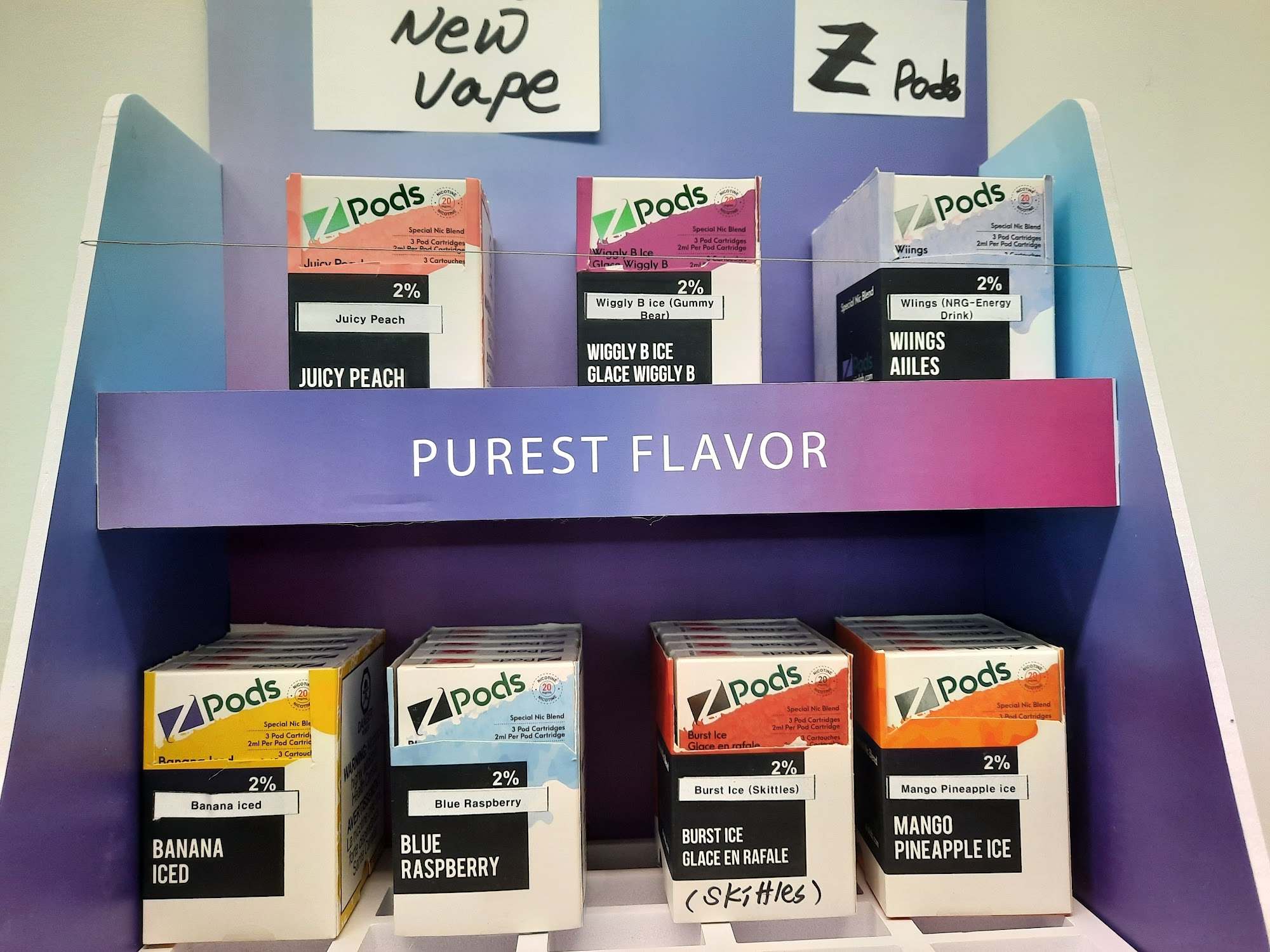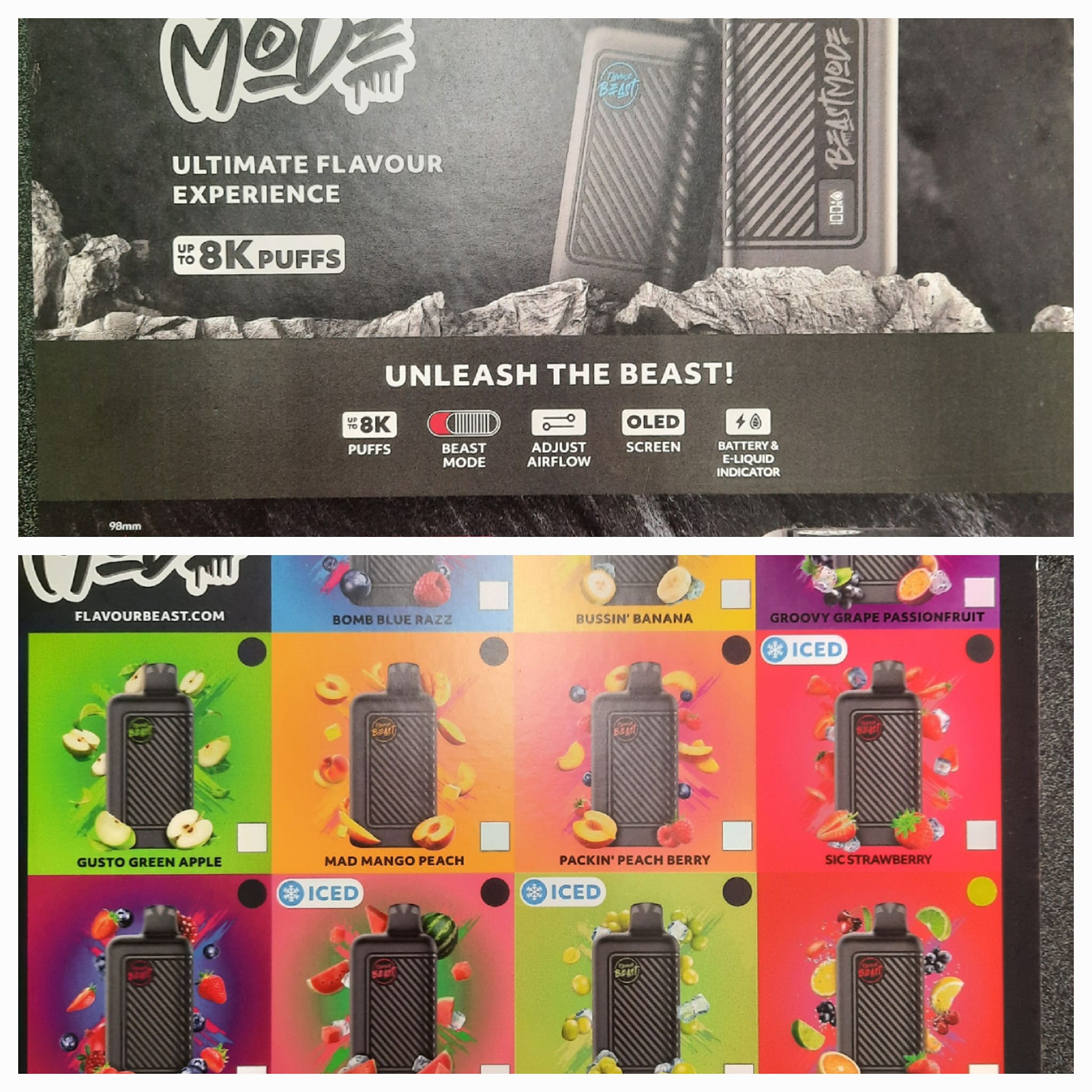 A lot of different flavourful vapes so many brands, so many flavours. 10/10