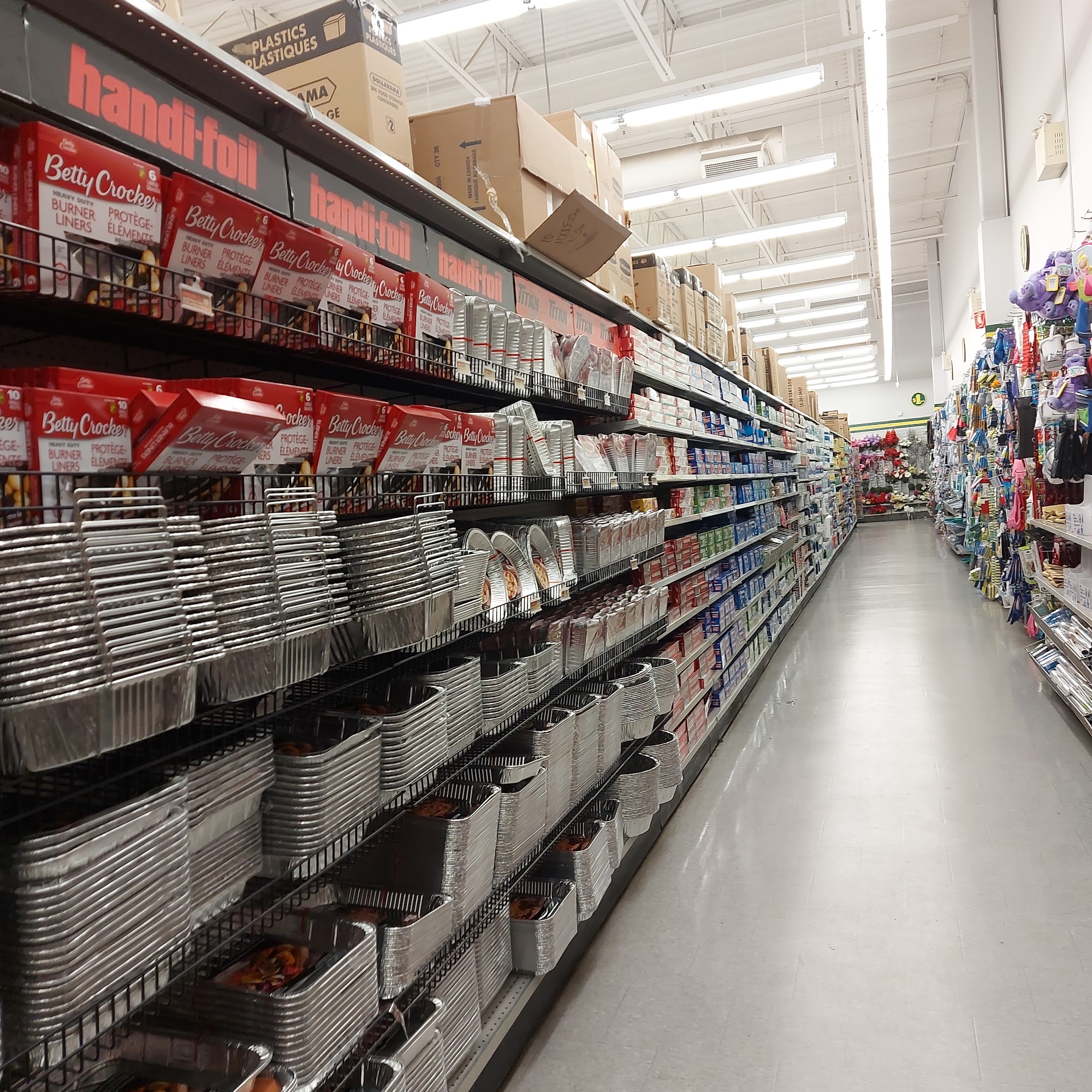 Dollarama offers an exceptional experience with outstanding service from attentive staff, including a gentleman with long hair who went out of his way to help find items and answer questions with a smile. Has everything and it's still pretty cheap, offering name brand stuff for less money than Walmart. One of the largest outlets of Dollarama, it is cost effective for kitchen and bathroom utilities compared to others shop. People visit this store often and are very happy with service and a friendly atmosphere, with chatting while waiting for cashier. Cash is slow, with a huge line and one person on cash, causing people just putting their stuff down and walking out, which may lead to losing money unless more cashiers working.