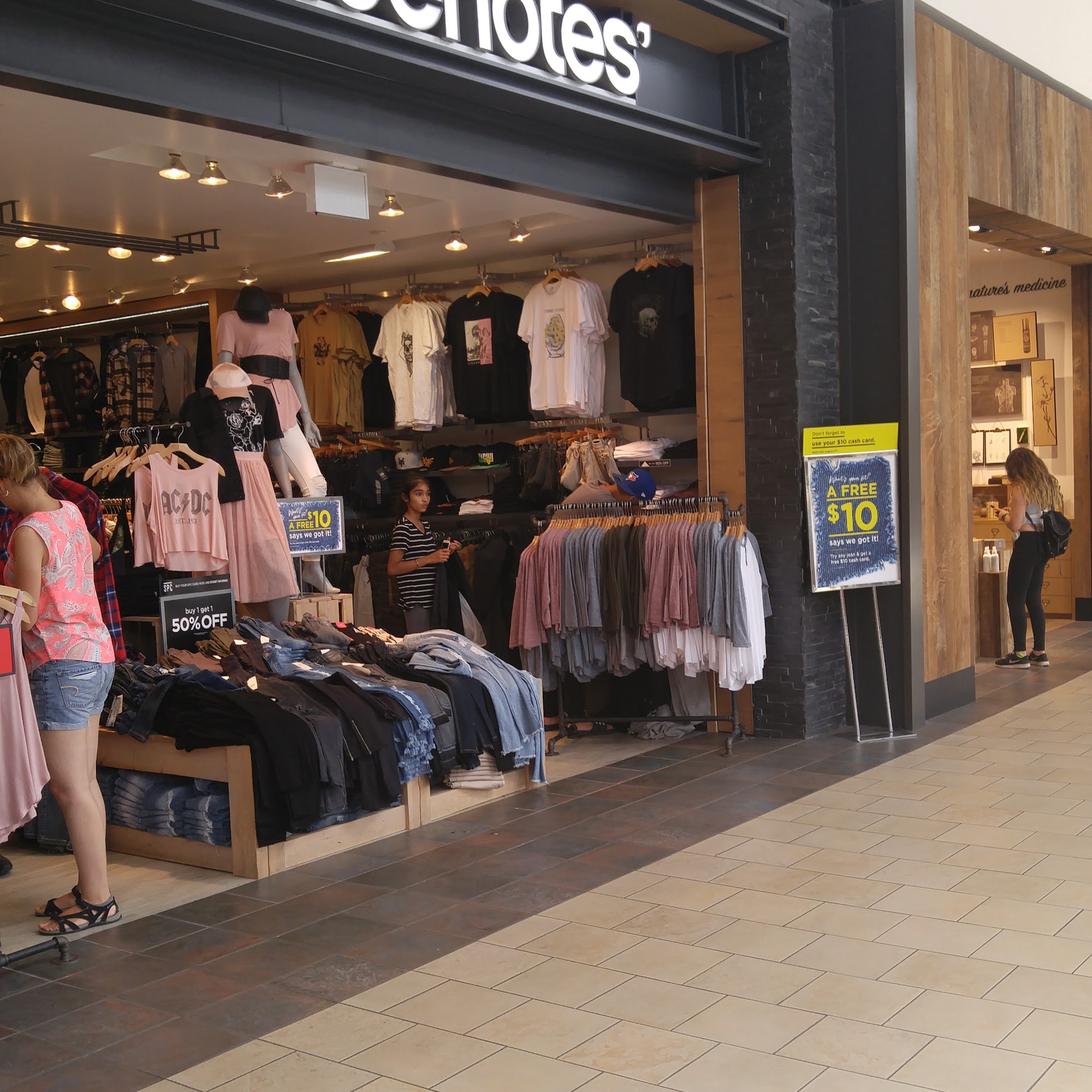 Bluenotes is a Canadian denim retailer offering jeans, hoodies, jackets, and graphic t-shirts at great prices with very good customer service. Customers report perfect fits, really cheap great deals everyday, and incredible customer service where staff go above and beyond to assist. Some note that on busy days like Boxing Day, dressing rooms may be closed, but the store maintains an exchange or store credit only return policy. Overall, it is a good store with an amazing manager and helpful staff, leading many to state they will be back again in the future.