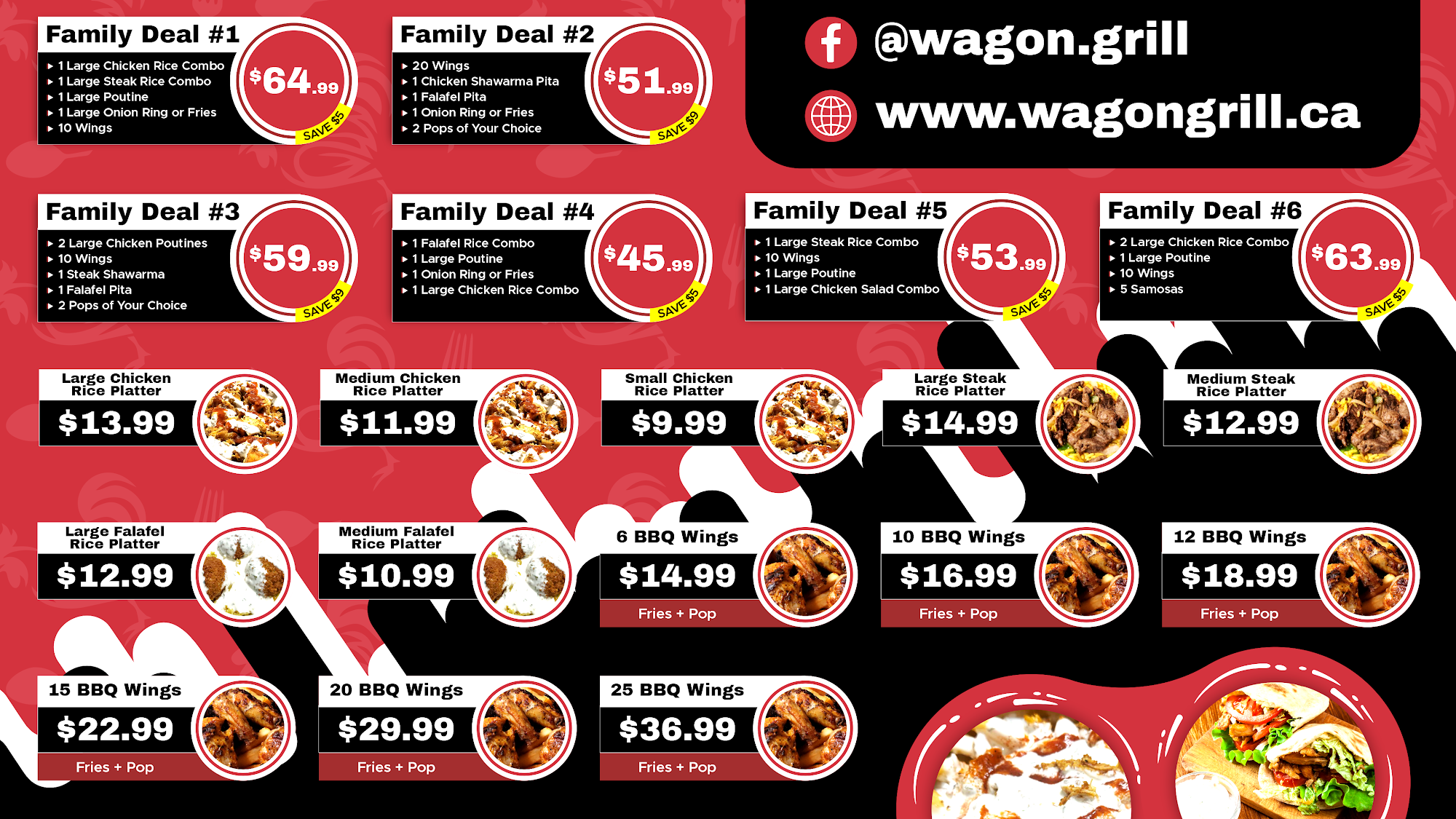 Wagon Grill is a small family business known as a favourite local shawarma spot. The food is excellent, fresh, delicious, and incredibly flavorful, with consistent quality. Dishes are made by hand, featuring nicely spiced chicken, a puffy round wrap, many pickles and vegetables, a secret white garlic sauce, and seasoned onions. The generous portions include recommendations for the shawarma sandwich, rice combo, butter chicken, falafel, poutine, fattoush salad, fries, and homemade baklava. The staff and owners are described as incredibly generous, friendly, kind, and lovely, providing amazing customer service. The overall meal experience is highly recommended.