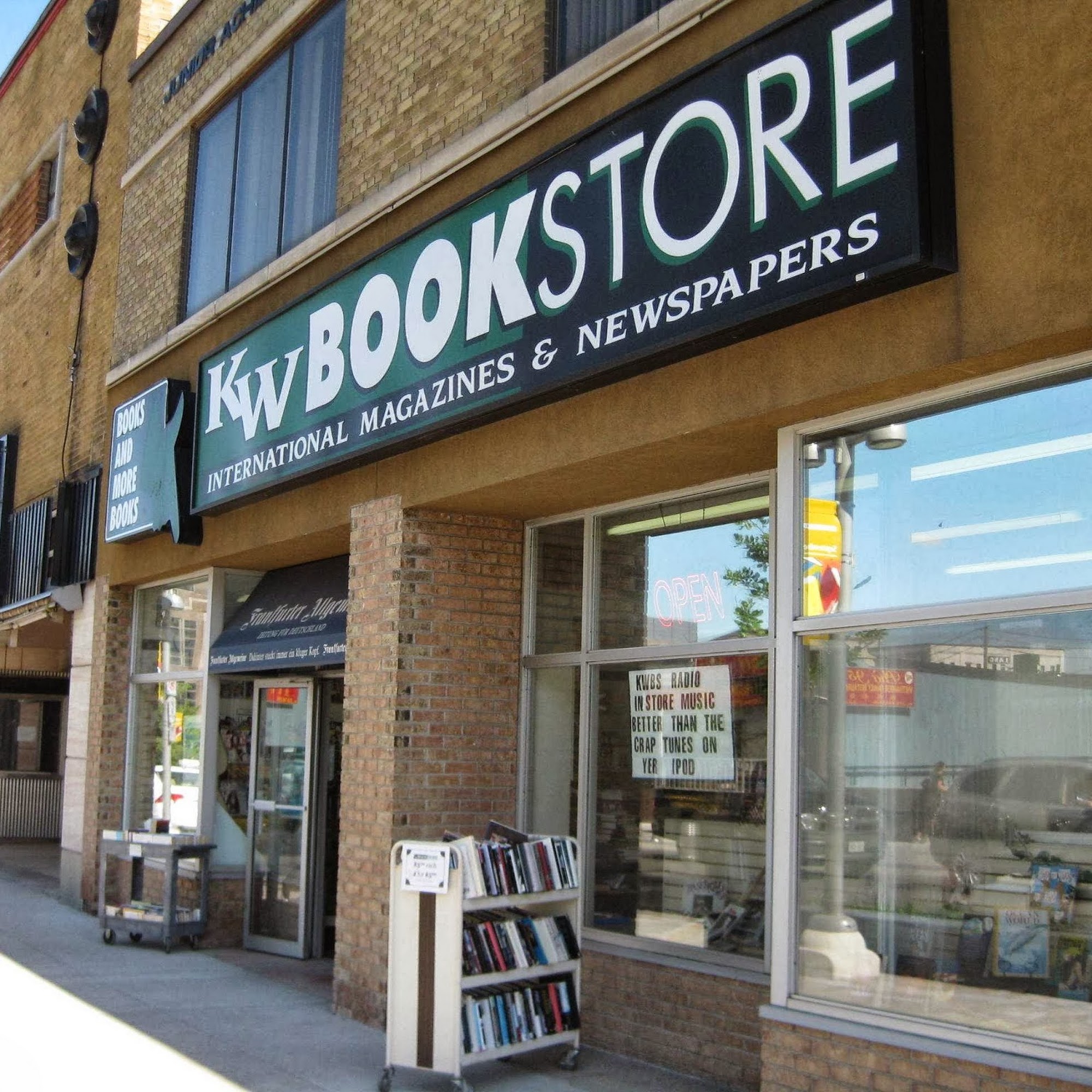 KW Bookstore is a great old bookstore with a wide selection of books, magazines, and more on lots of topics. It offers a fantastic experience with friendly vibes and a better selection than many new-book stores. The staff is always friendly and helpful. Prices are fair, very reasonable, and great, with some great finds. The shop is a little tired, but it is a good place to browse, shop, and hold a book. Some find the credit program overly complicated. Customers recommend the store and plan to return.