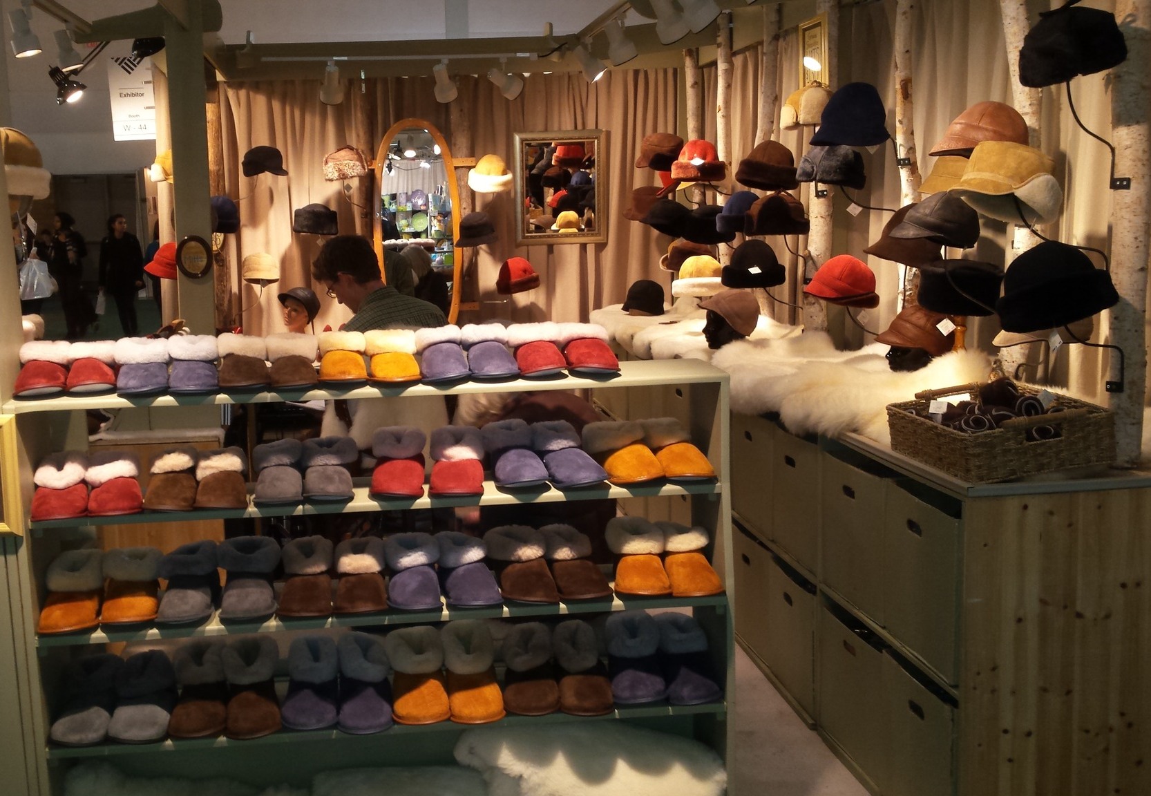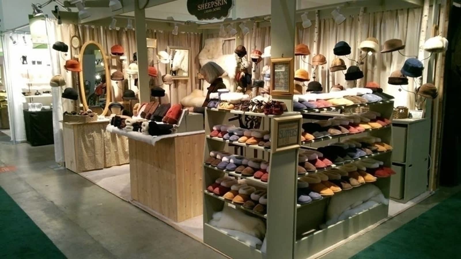 Business partners (and next door neighbours) Alan Eschke and Dinah Woodworth each have over 41 years of experience making and selling sheepskin products. They have been participating in the One of a Kind craft show since the late 1970's, originally as members of "The Warm Corner". In 1999, when The Warm Corner wound down and closed, Alan and Dinah opened Lanark Sheepskin as their own business. Dinah's son Max has been helping them since childhood. Assisted by Shelagh McGuinty since 2009, everything is made in Lanark by the team of four. They also specialize in custom orders, over-sized items, and washable sheepskin rugs, including lambskin for babies.