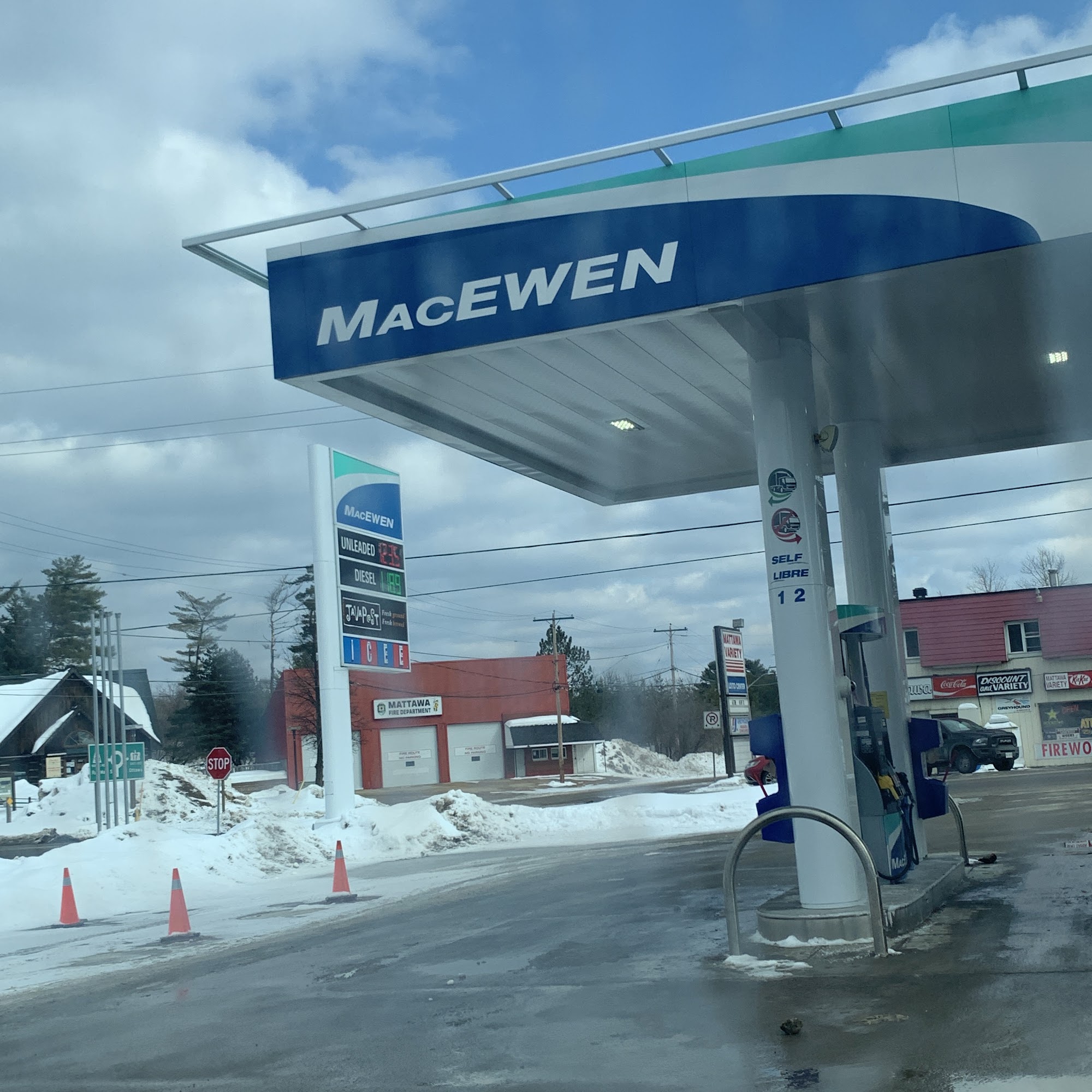 MacEwen Mattawa is a Canadian-owned fuel and convenience business with over fifty years of experience. It offers high-quality fuel, a car wash, and a Quickie Convenience store, making it easy for customers to refuel and grab snacks or essentials. The station is conveniently located near the roundabout, close to Route 533 and Route 17, with several pumps to reduce wait times. Customers appreciate the friendly staff, especially those who go above and beyond to help, creating a welcoming environment. The facility includes a small green area for dogs and a well-stocked convenience store. However, some reviews mention that the bathroom could be cleaner and that the lock was broken, which caused some concern. Overall, MacEwen Mattawa is known for its good location, helpful staff, and a range of services that make it a reliable stop for travelers.