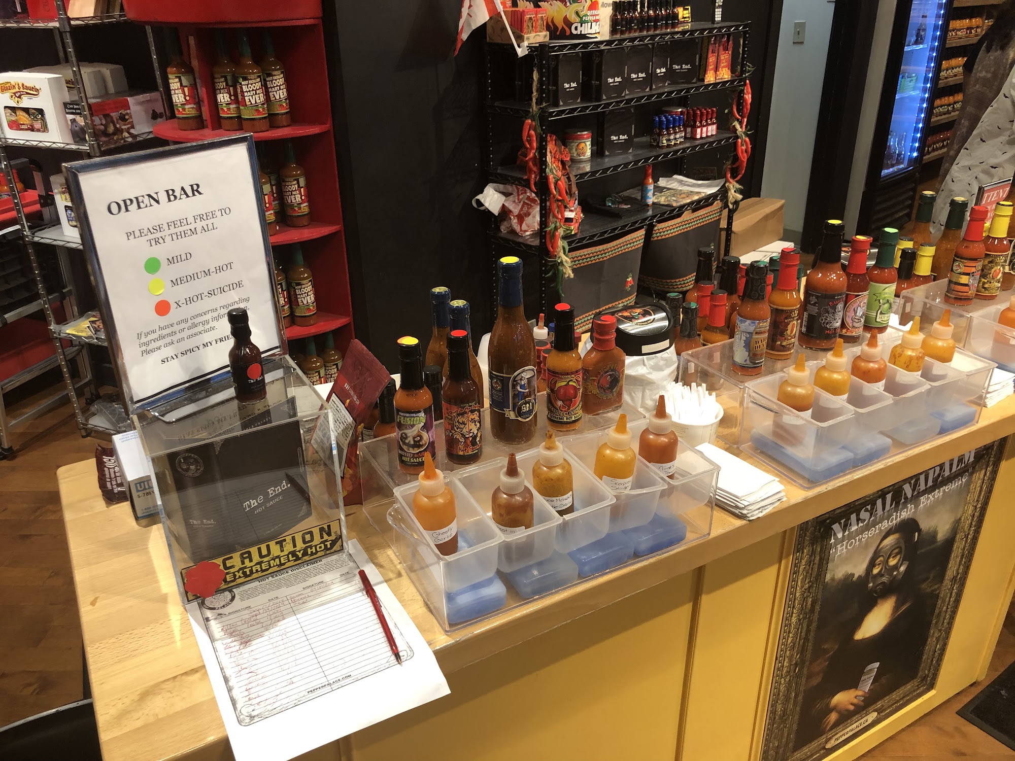 This place is amazing ! The lady working was so great to my nephew and I today. She let us sample everything they had and was super helpful. Definitely worth a visit if you like spicy. Will be back again !