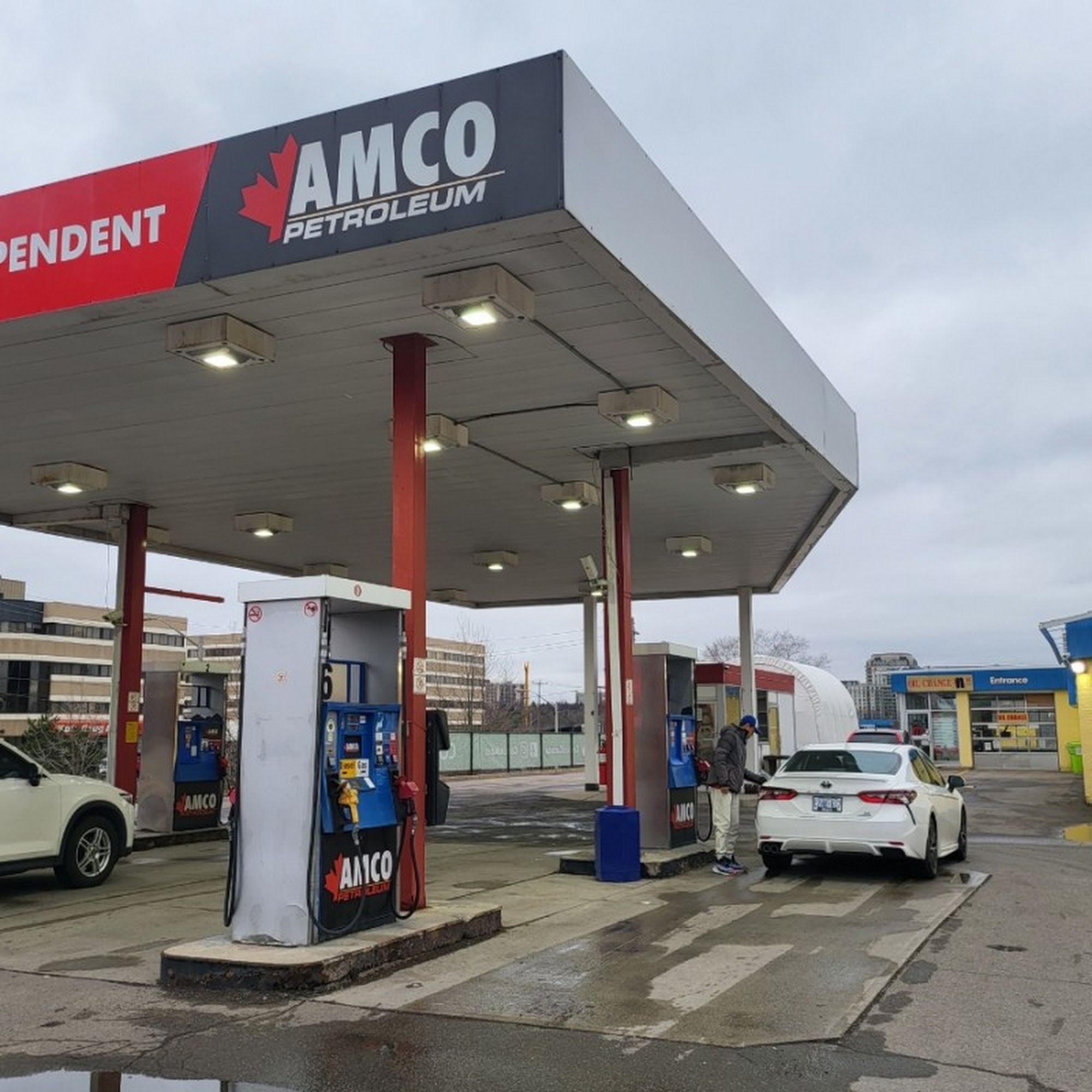 AMCO Ovia Petroleum is a small, local gas station that offers a convenient and affordable refueling option for the neighborhood. The station is situated in a compact layout, requiring customers to circle around the pumps and exit via the driveway closest to Sheppard Avenue. Customers consistently praise the station's affordable gas prices, which are often the cheapest in the area, unless one has a Costco membership. The friendly and efficient staff are noted for their excellent customer service, handling transactions smoothly and even offering patience when minor payment issues arise. In addition to fuel, the station provides a range of useful amenities, including oil change services, car wash facilities, as well as vacuum and air pumps. The station also operates a rewards program, providing customers with free snacks or beverages when they spend over $50 on gas. Overall, AMCO Ovia Petroleum is a reliable and customer-oriented gas station, offering a pleasant refueling experience for the local community.
