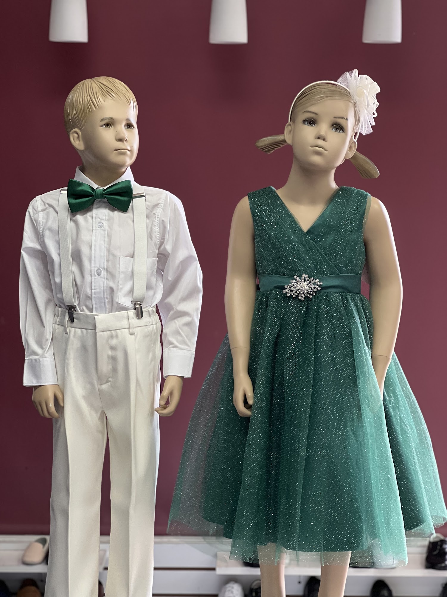 Kidz Couture is a well-organized and tidy store that offers an impressive selection of children's formalwear. Customers often find everything they need for special occasions, including baptism outfits, tuxedos, dress shoes, and accessories like socks, belts, and bonnets. The staff, including helpful and professional team members, provide excellent service, offering advice on sizing and product choices, ensuring a smooth shopping experience. Many reviews highlight the welcoming atmosphere and the employees' willingness to assist, making it easy to find the perfect outfit for events such as weddings, hockey games, or other formal celebrations. The store boasts good prices, especially considering the quality of the products, making it accessible for families on different budgets. Customers appreciate the quick resolution of issues when shopping online and the availability of a wide variety of styles and sizes. Overall, Kidz Couture is praised for its helpful staff, clean environment, and high-quality offerings, with many customers eager to return for future formalwear needs for their children.