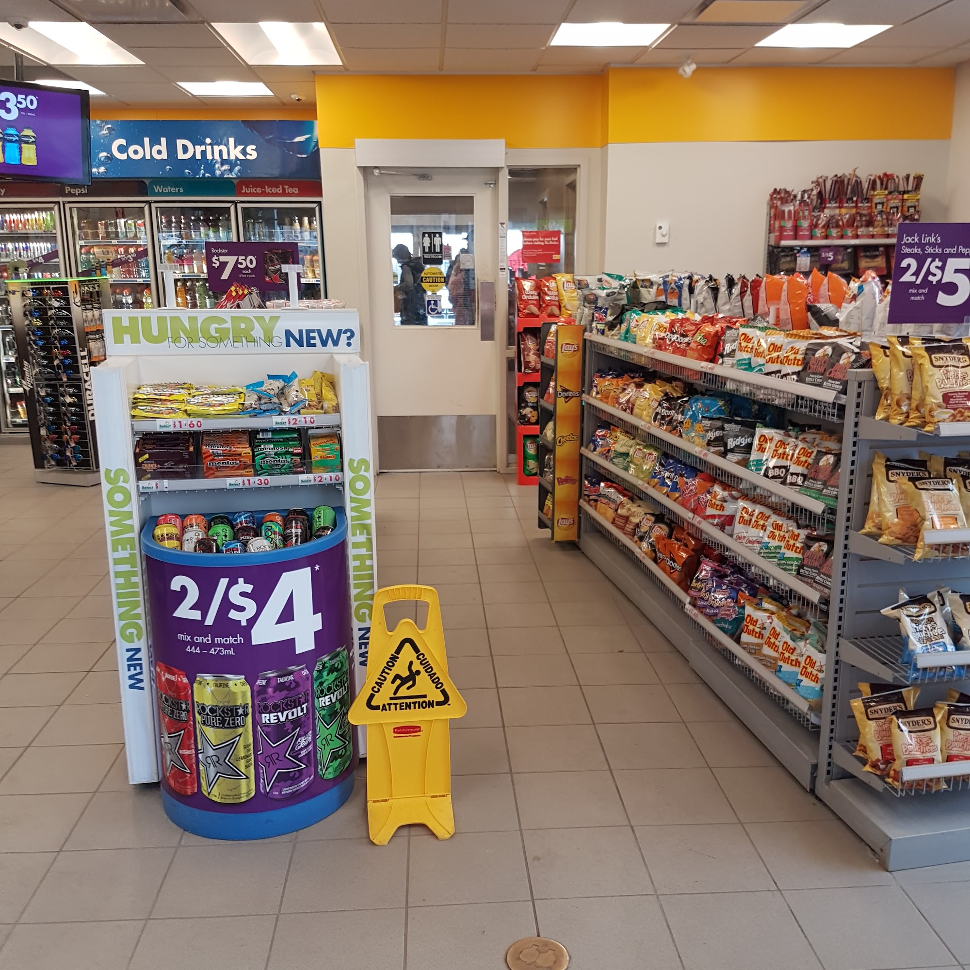 Friendly staff, good selection of snacks and married beside a Tim Hortons