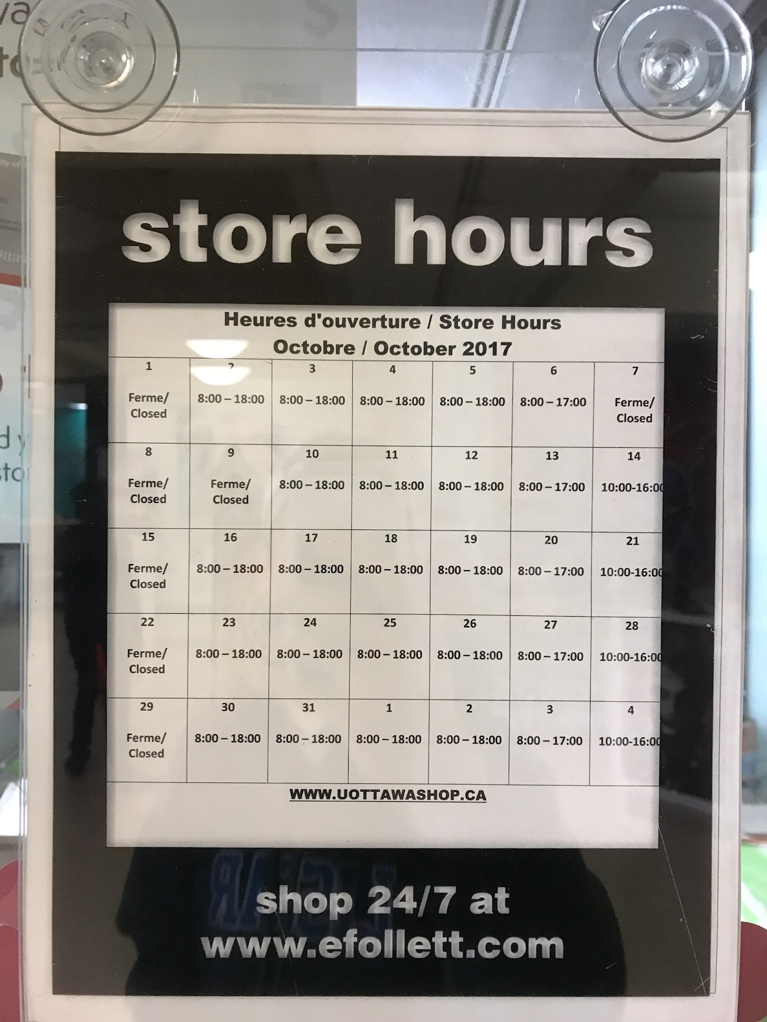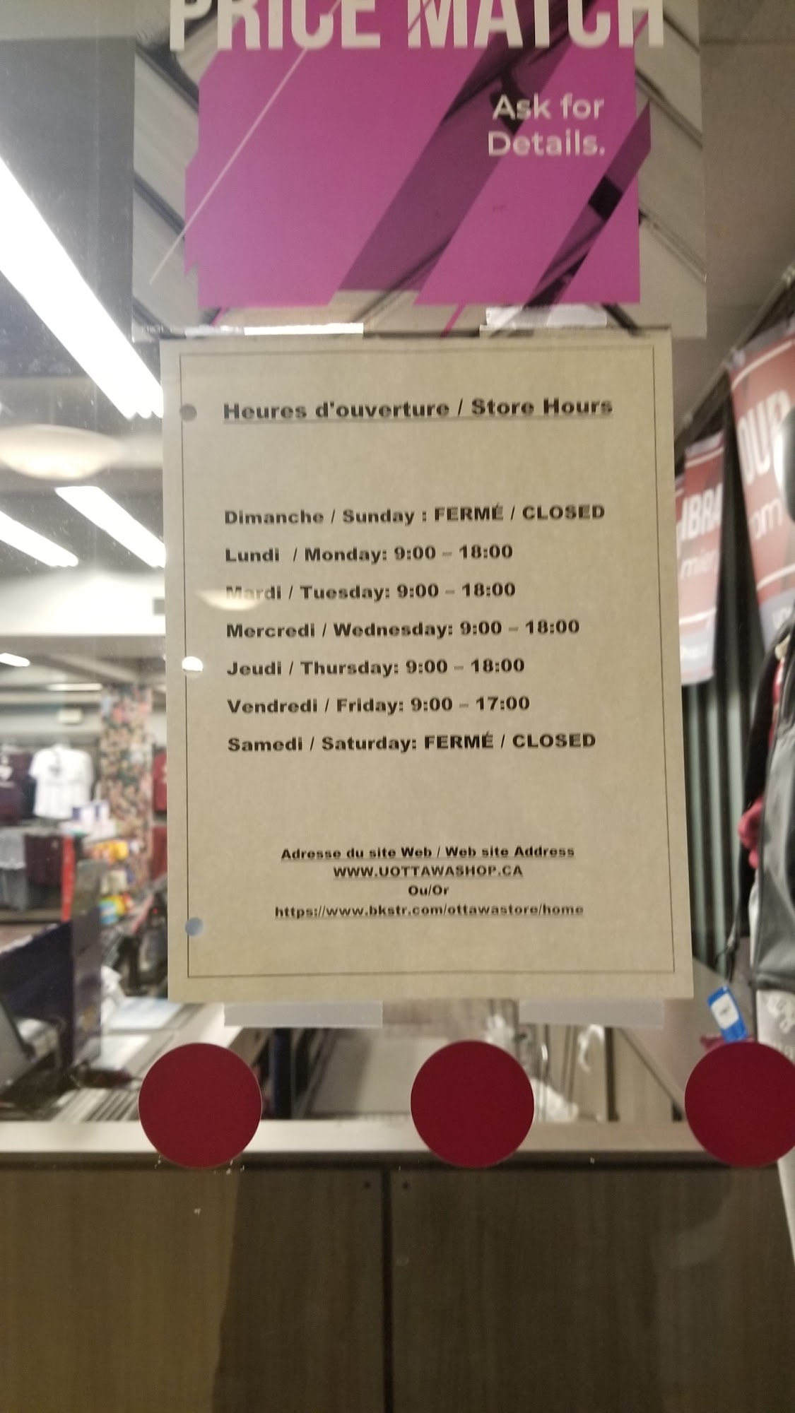 85 University UCU, Level 0, Ottawa ON K1N 6N5 Hours