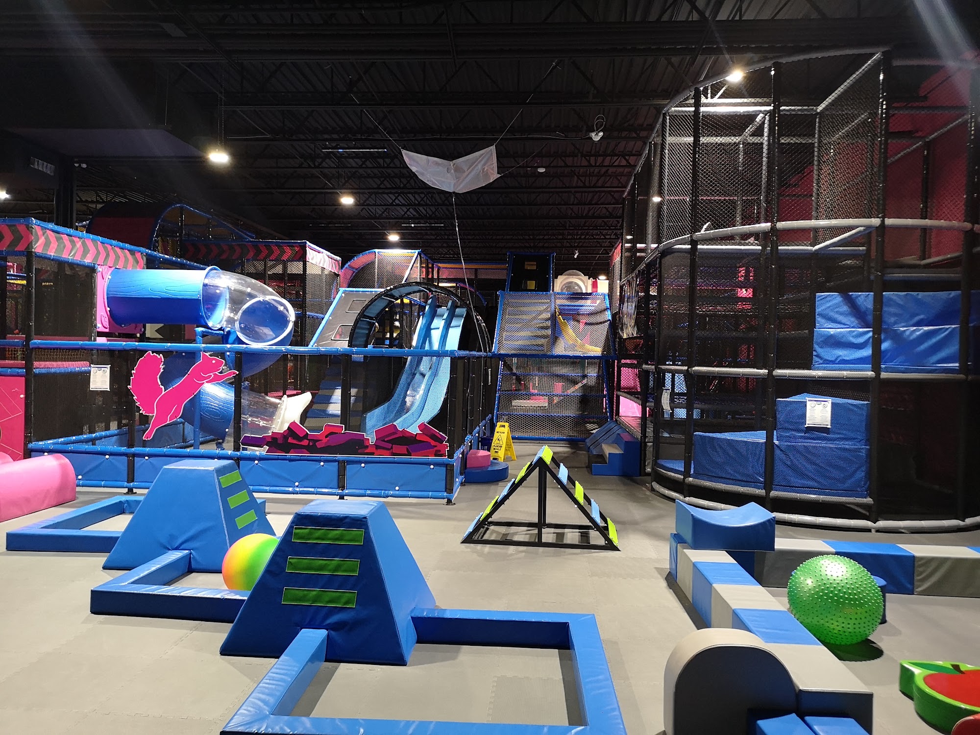 Flying Squirrel Trampoline Park is Ottawa's premier indoor playground, offering a massive facility with trampoline zones, dodgeball courts, climbing walls, a foam pit, and a fun, vibrant obstacle course. It is described as a great place for kids and adults to experience endless fun, excitement, and laughter, providing an awesome time for the whole family. Many visitors note it is a fun place where kids have fun and recommend it highly. However, experiences with organization and service are mixed. Positive aspects include polite and helpful cashiers, staff that seem well-focused on safety and fun, good service, and a fairly well-maintained facility with clean washrooms. The music is energetic and food options like pizza and amazing slushies are called yummy. Significant criticisms focus on disorganization and safety concerns. The venue can feel overcrowded and chaotic, described as a "shit show" with overwhelming disorganization. Long wait times and slow check-in are common, with lines even on a Monday morning. The trampoline area is cited as not a safe environment for young children, with a lack of supervision leading to a free-for-all atmosphere where older kids bump into younger ones. The entrance often has mountains of wet coats and boots with no storage, adding to chaos. Staff presence is sometimes absent or not assisting customers, and the food court has little availability. Additional complaints mention a dirty bathroom floor, out of soap, unsanitary conditions like gum on boots, and play equipment needing a thorough cleaning.