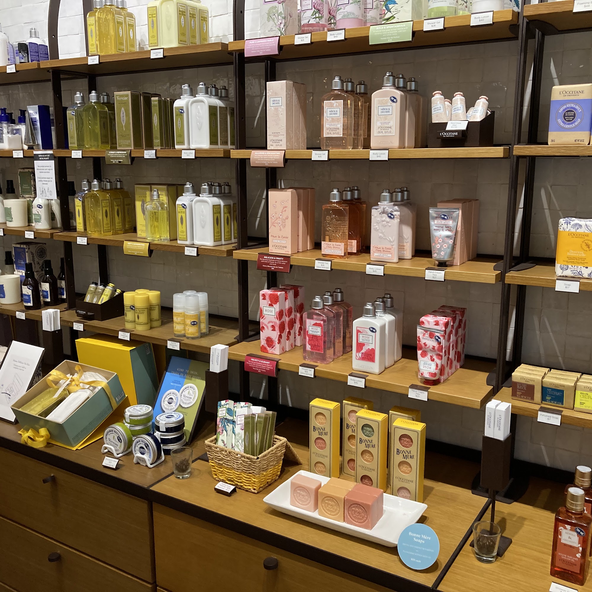 L'OCCITANE EN PROVENCE is a well-loved store known for its high-quality beauty products, including face care, fragrances, bath, body, haircare, and men's grooming items. The brand is celebrated worldwide for its unique textures, delicious scents, and beautiful packaging. All products are made with the finest natural ingredients, sourced ethically and sustainably from local producers in Provence. These features have earned L'OCCITANE prestigious awards and a loyal global following. Customers often praise the friendly and professional staff, highlighting personalized service and helpfulness. Visitors appreciate the warm greetings and thoughtful touches, such as offering snacks and drinks. Many mention knowledgeable employees who answer questions thoroughly and provide excellent customer care. The store itself is described as one of the prettiest in the mall, creating a welcoming environment. Customers also enjoy the sensory experience of trying products and the quality of items like the almond shower oil, which has become a favorite. Overall, L'OCCITANE en Provence combines beautiful, natural products with attentive service, making it a popular destination for those seeking high-quality skincare and personal care items. The store's inviting atmosphere and commitment to sustainability and ethical sourcing contribute to its reputation and loyal customer base.