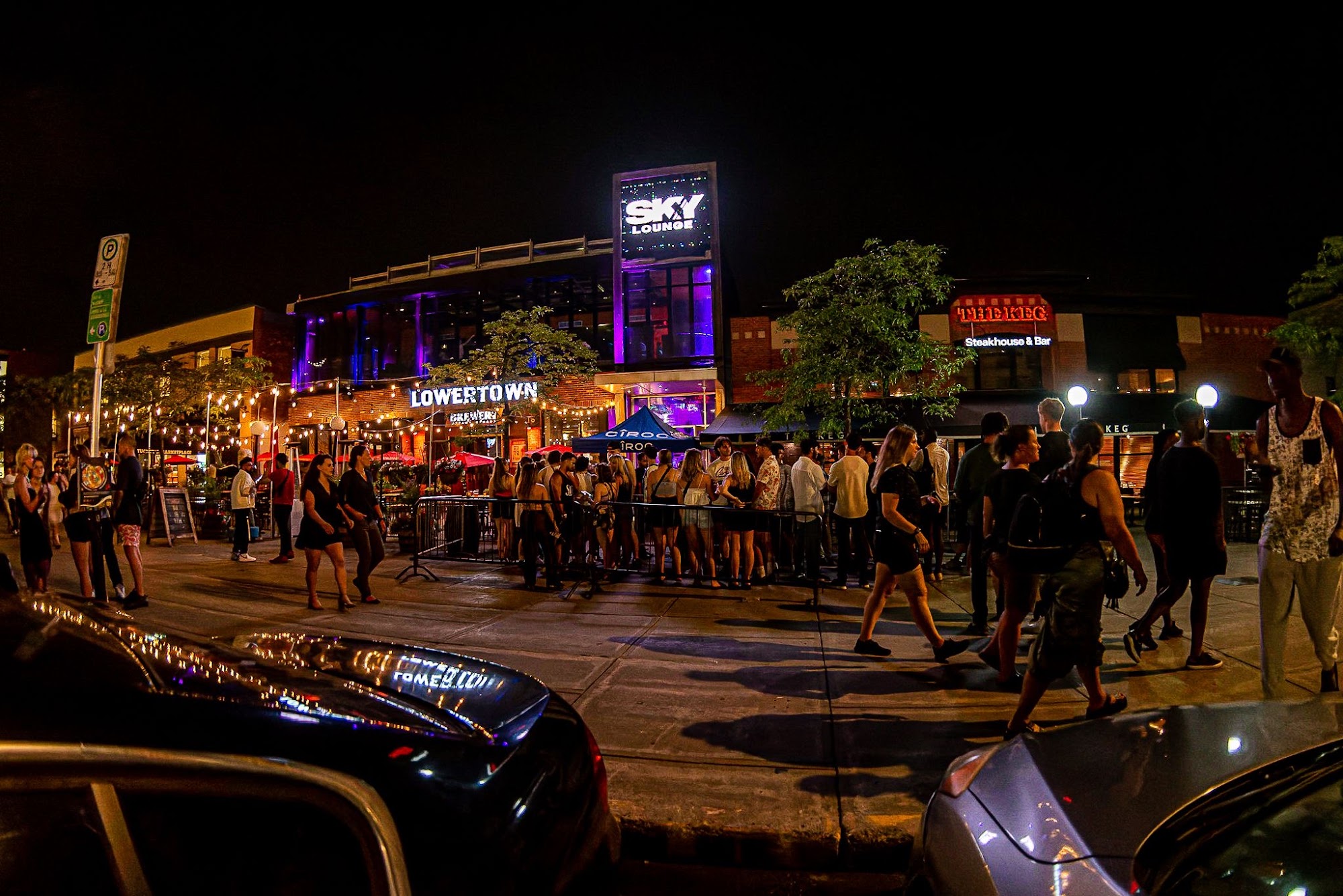 Sky Lounge is a spacious bar and one of Ottawa's top dance bars, known for its large dance stage and huge bar. The atmosphere is highly volatile, ranging from absolutely dead to a great party atmosphere and very busy, especially during its popular monthly Latin night events. On those nights, it is packed with happy dancers and has a lively, safe environment with classy, polite security both outside and inside. The crowd is diverse, open to anyone regardless of race or age. It is a really nice place that can be a really great party, with fun events like viewing parties and performances such as Dueling Pianos, which are utterly amazing. However, the layout is terrible for a nightclub. The small dance floor becomes super congested, and a giant table on its edge wastes space. The seating area is freezing in winter, and coat check issues lead to a giant pile of coats. Service is inconsistent; a bartender took forever and gave the wrong drinks, and drinks are considered a rip-off—expensive for small pours, like a mini glass full of ice. The men's washroom stall door has no latch, which is problematic. The club's vibe feels frozen in time, with bouncers who can turn agro and DJs needing improvement. Wheelchair access is limited due to stairs without a visible elevator. With more order and caretaking, it could be a really great place.