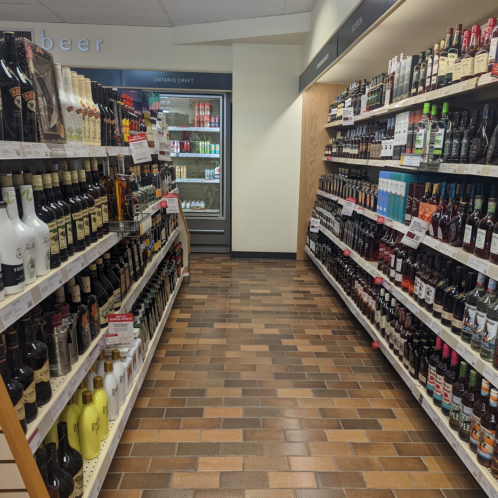 Surprisingly physically small LCBO that has a lot of variety. Many wines, spirits, liqueur, coolers, and varieties of beer. Employees working were very friendly and store was clean. Takes Aeroplan and was able to use tap to pay. Also surprising it is closed on Sunday and Monday even in the summer when tourists are around