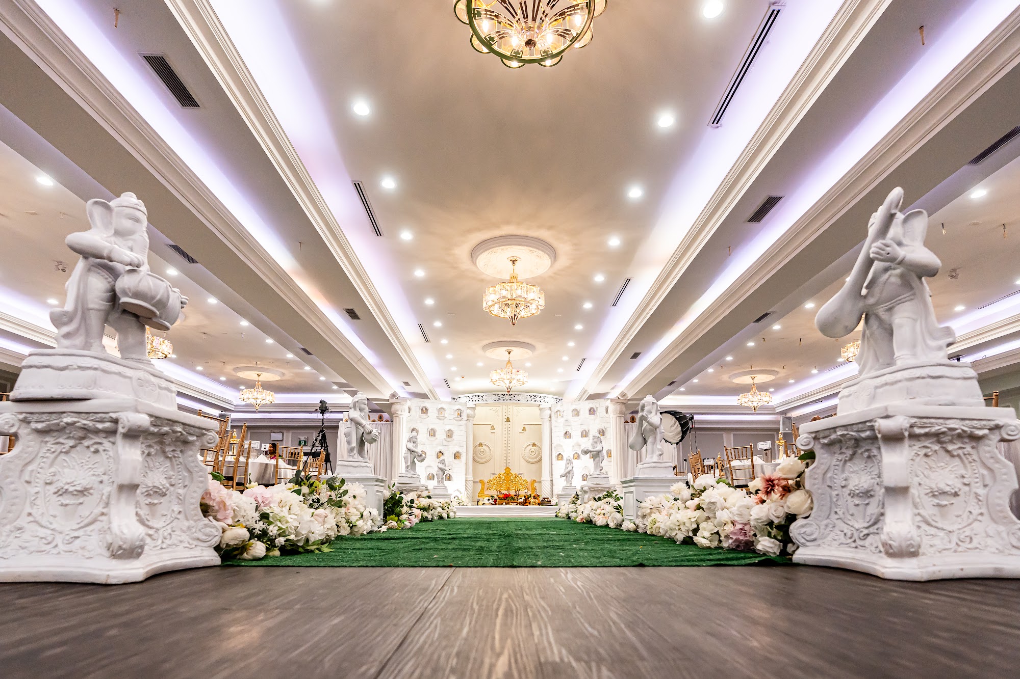 This is where memories are created. With over 25,000 square feet of elegant space, Kennedy Convention Centre is strategically designed with a unique state of the art audio visual system comprising intelligent table lighting and surround sound built throughout the hall (includes the lobby, washrooms, hall, bridal suites and exterior grounds). At Kennedy Convention Centre, you have the luxury and opportunity to select the lighting colors according to your preferences and color themes, this includes the lighting surrounding the exterior of the building and landscaping, in addition to the chandeliers and coffers within your banquet hall.