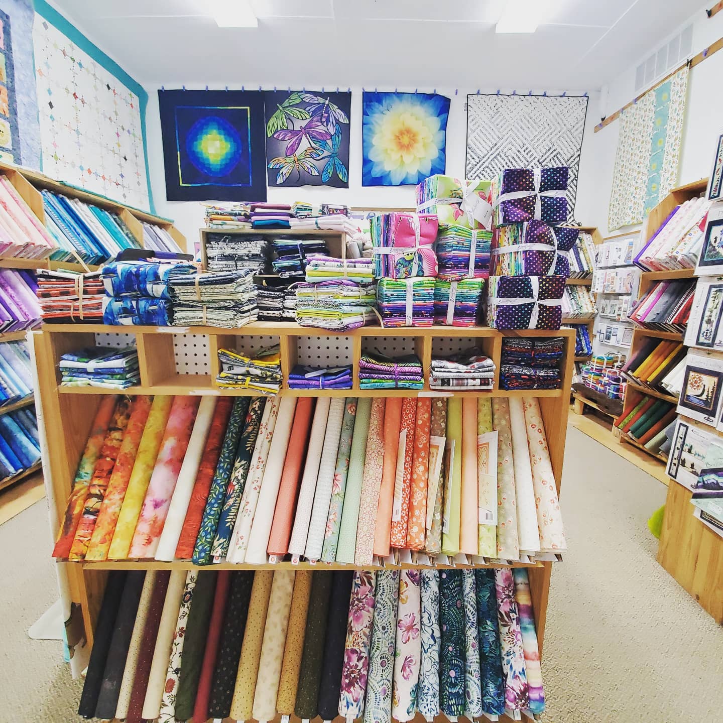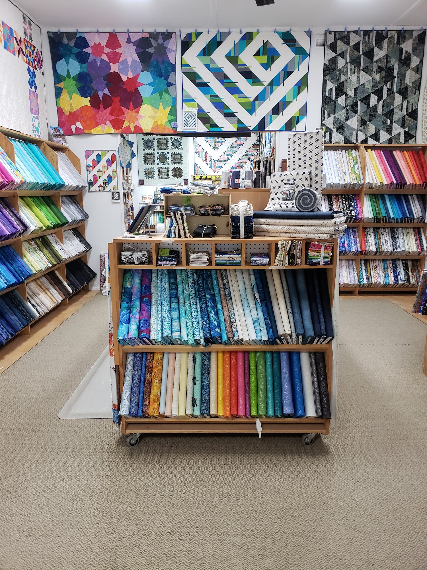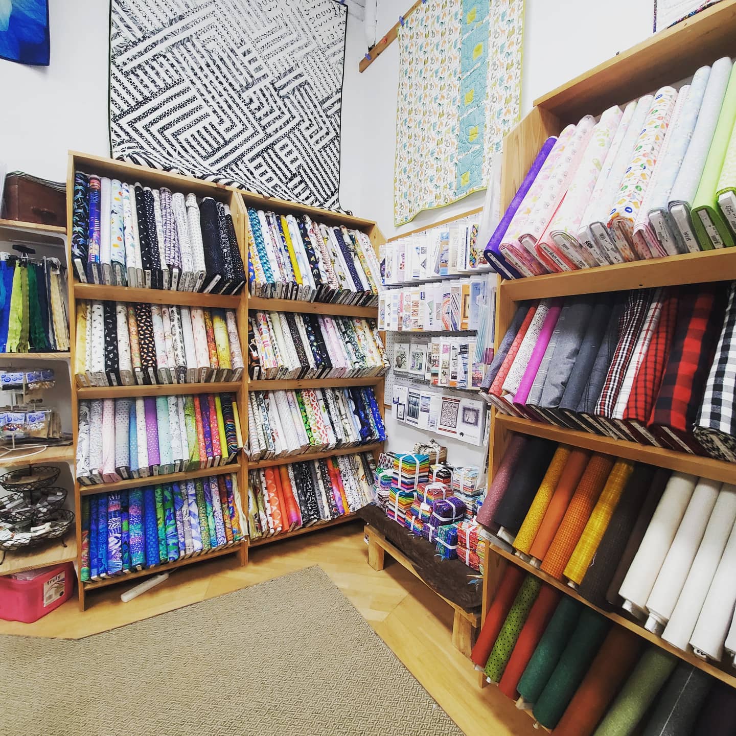 Lovely Quilt Shop featuring wide variety of fabrics, notions, patterns, and Quilting Classes for beginners to advanced! Helpful staff to assist in all of your sewing needs. Open since 1999, our shop provides an ever-changing array of fabrics, patterns, and supplies. Pfaff dealer on site and sewing machine servicing available. Contact us today for more information!