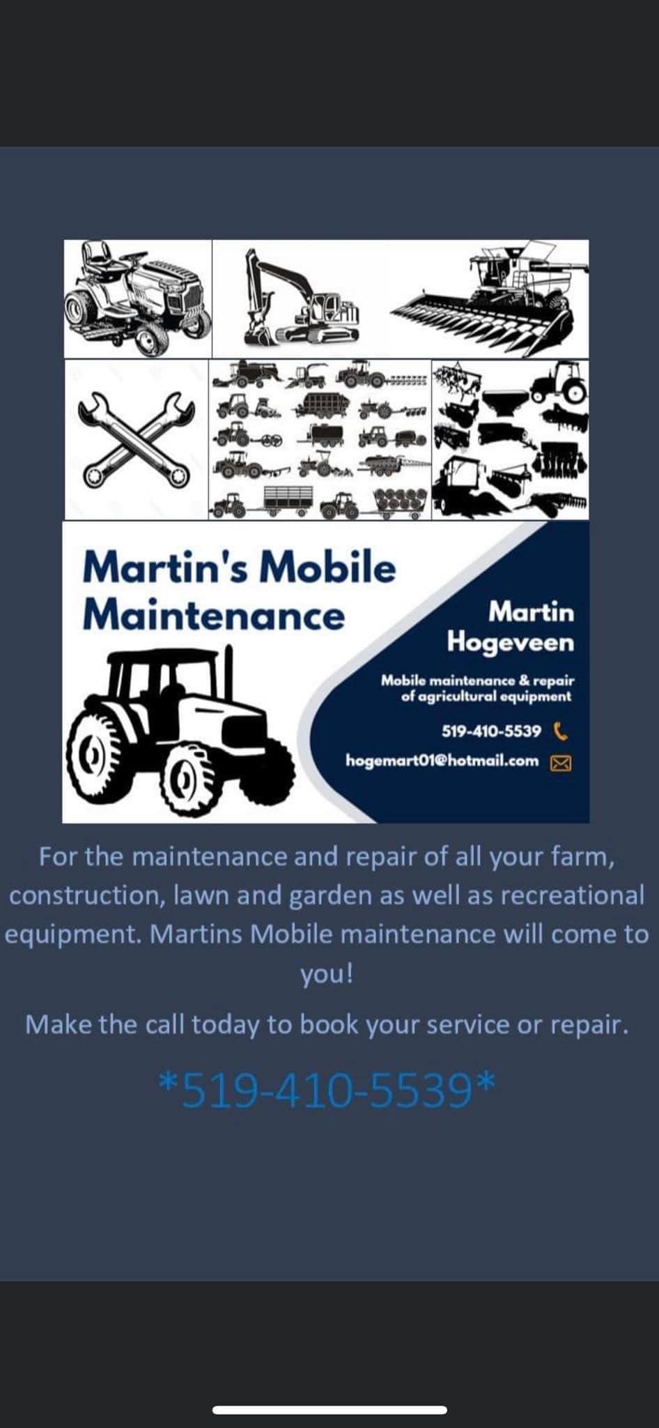 Martins Mobile Maintenance has provided us with great routine maintenance and repairs on our field equipment and tractors.